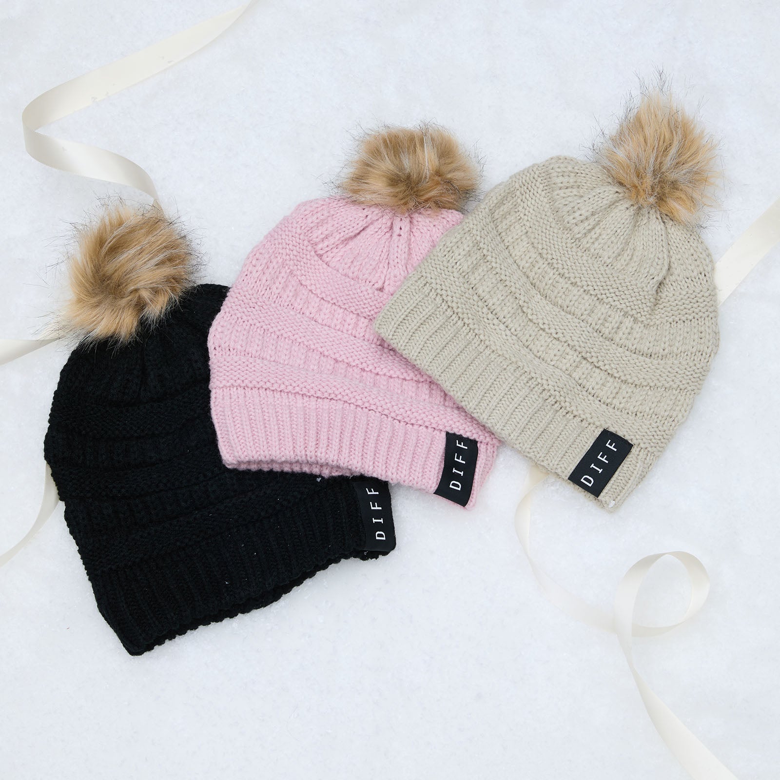 Feel oh-so-cozy in our stylish pom pom knit beanie. Featuring a knit design and fun pom pom on the top, our beanie has the perfect combo of style and comfort.