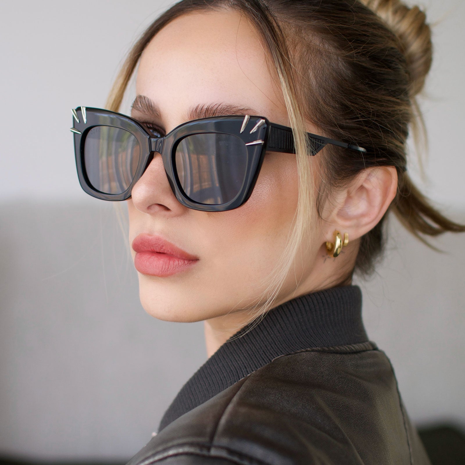 Bold, strong, and always iconic. Thick, timeless black acetate sets these frames apart while sleek metal accents at the temples are a crowning detail. Cat claw details and a vintage silhouette truly take these classic frames into the modern era.