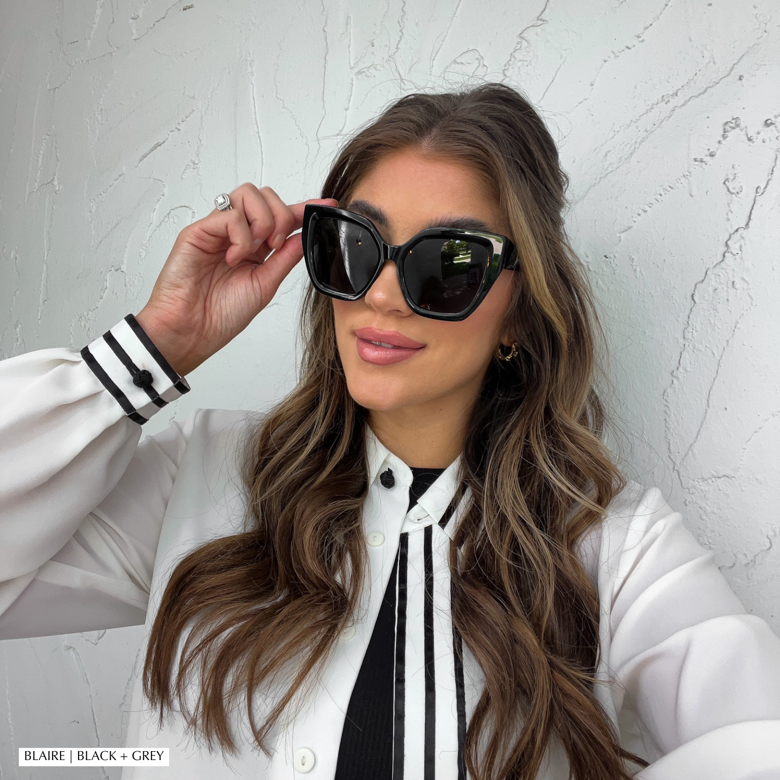 Oversized is everything. Radiating extra energy, Blaire's chic angle details complement a luxe acetate frame for a timeless iconic statement.