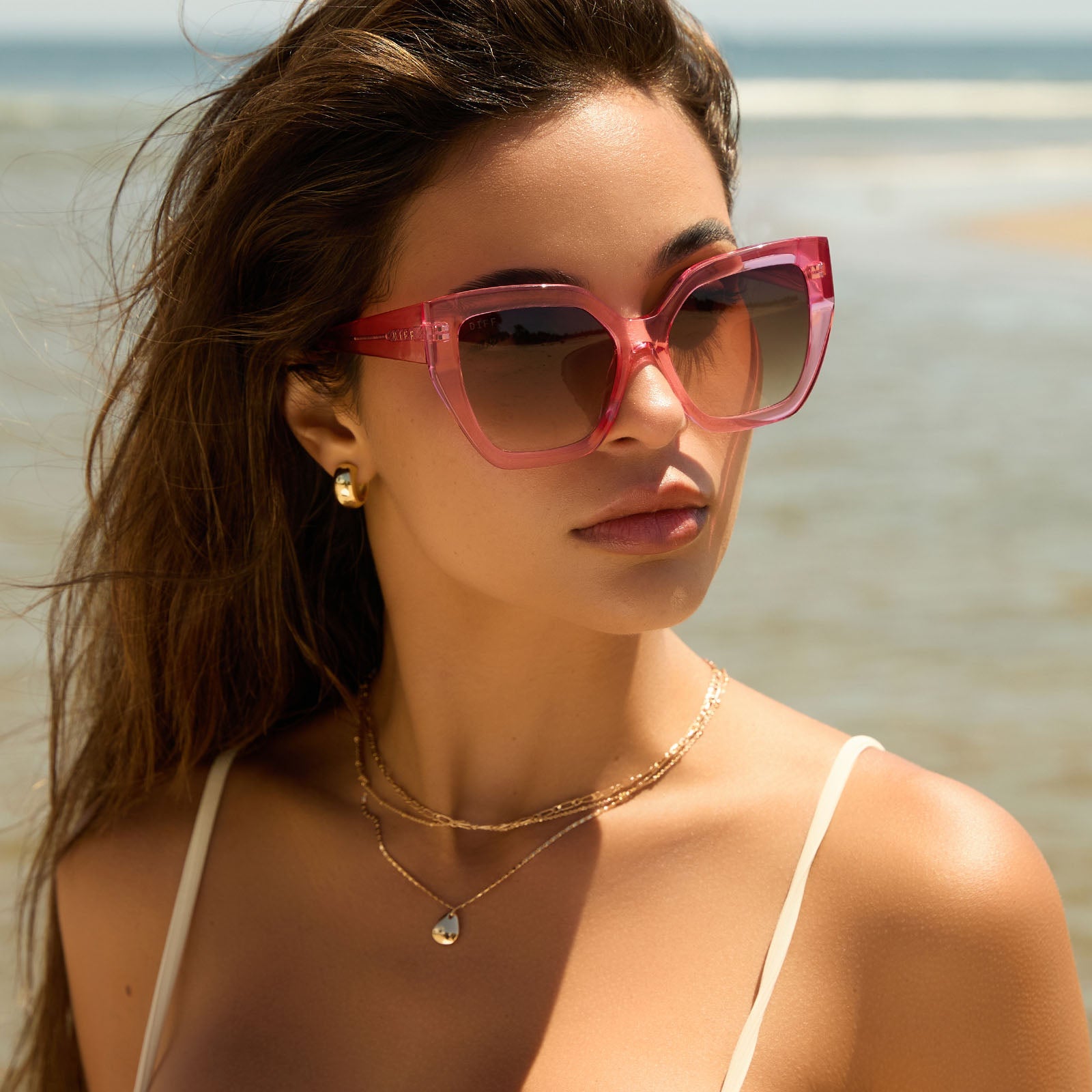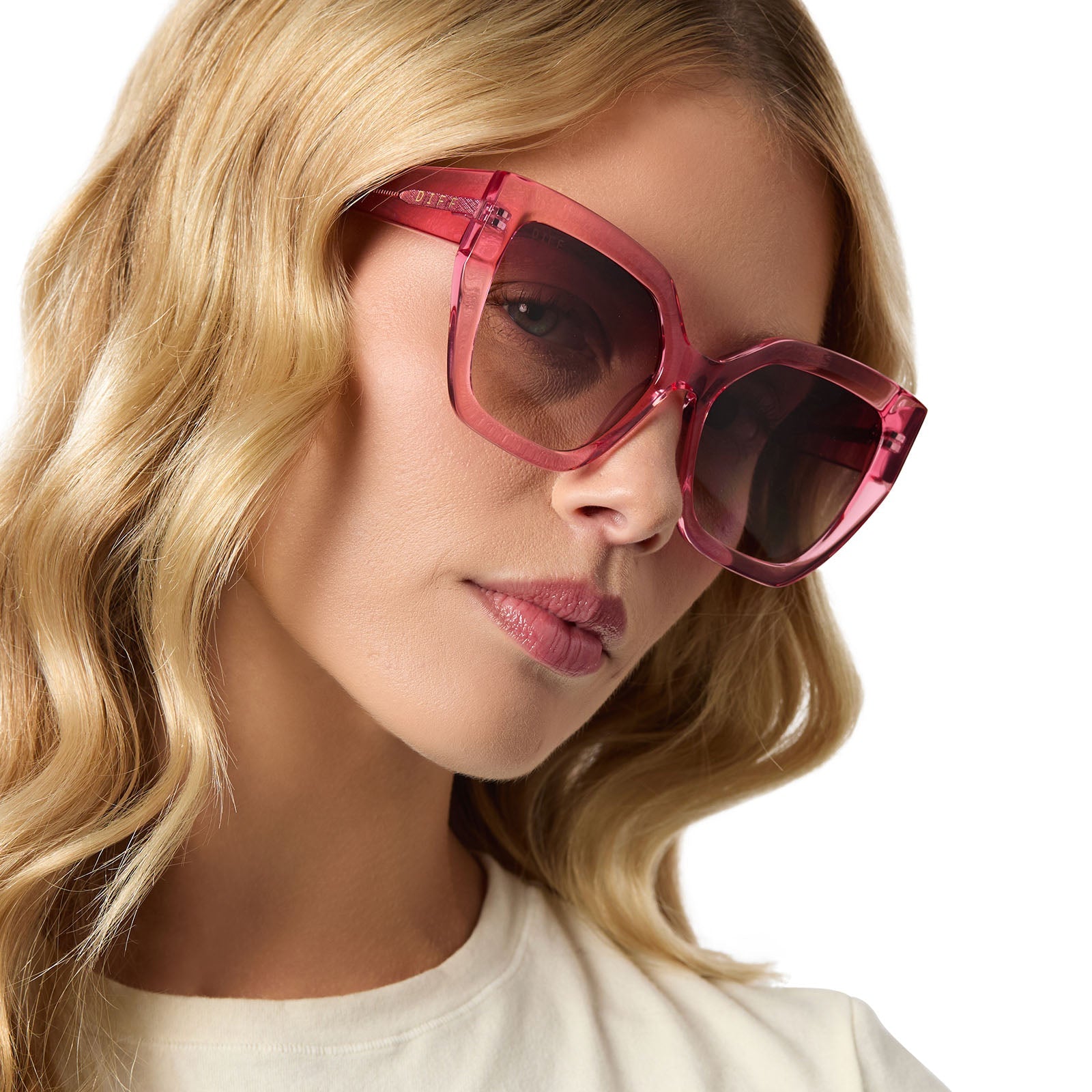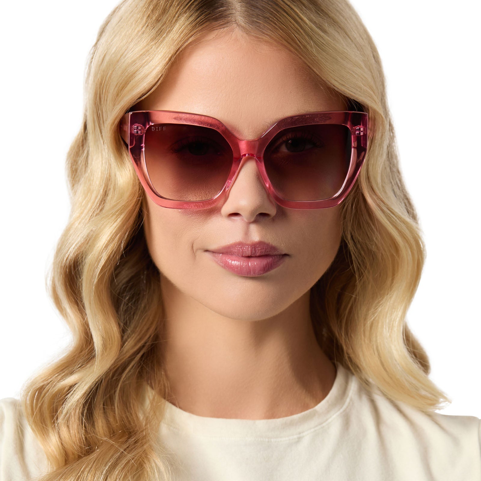 BLAIRE - CANDY PINK CRYSTAL + BROWN GRADIENT SUNGLASSES