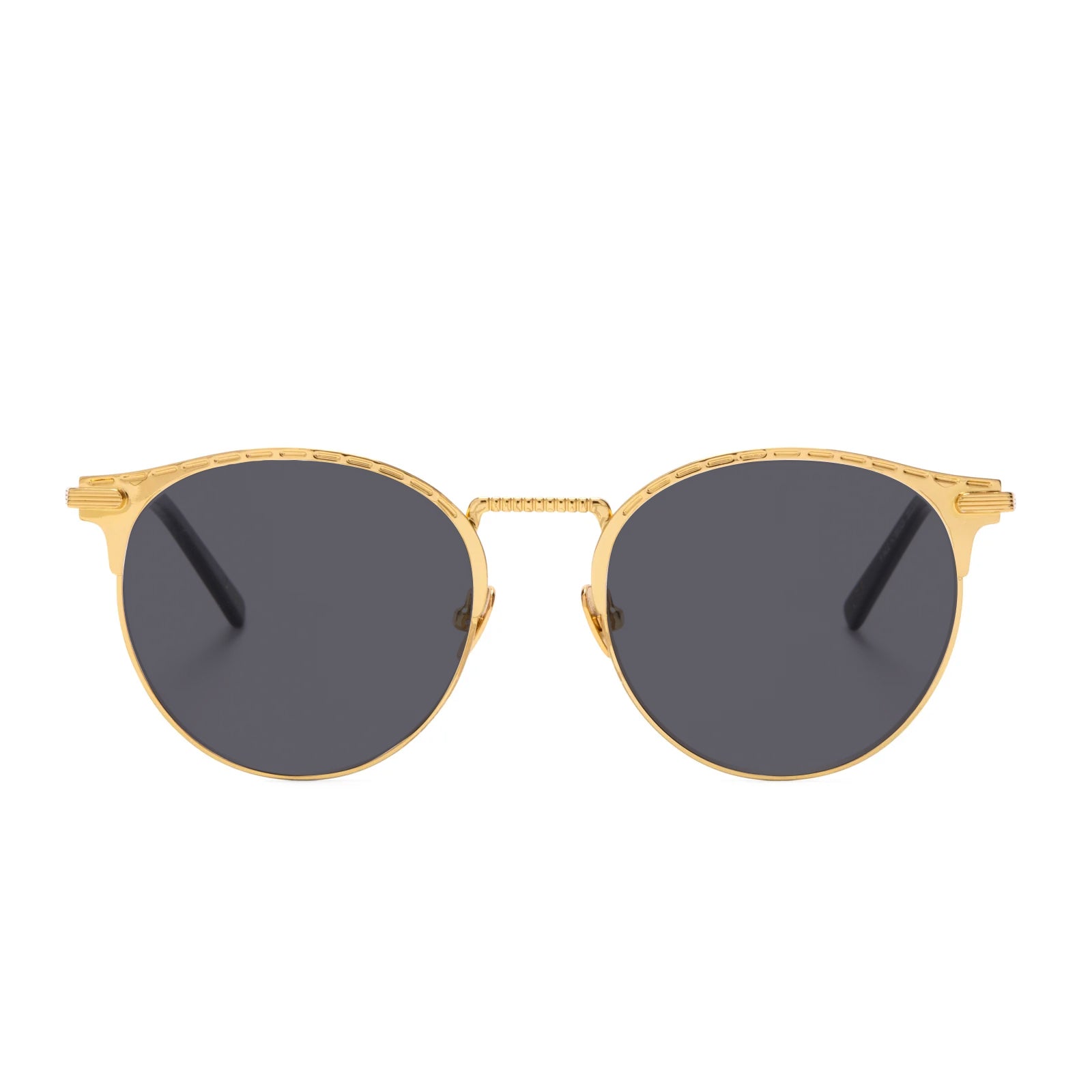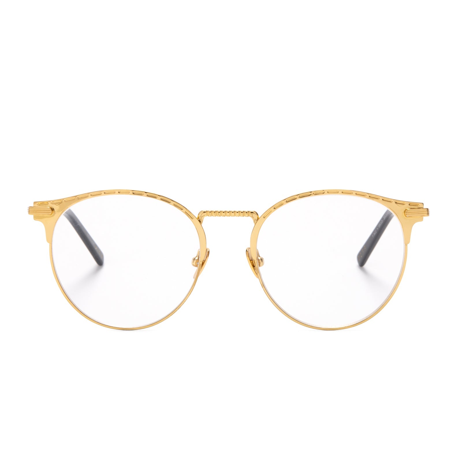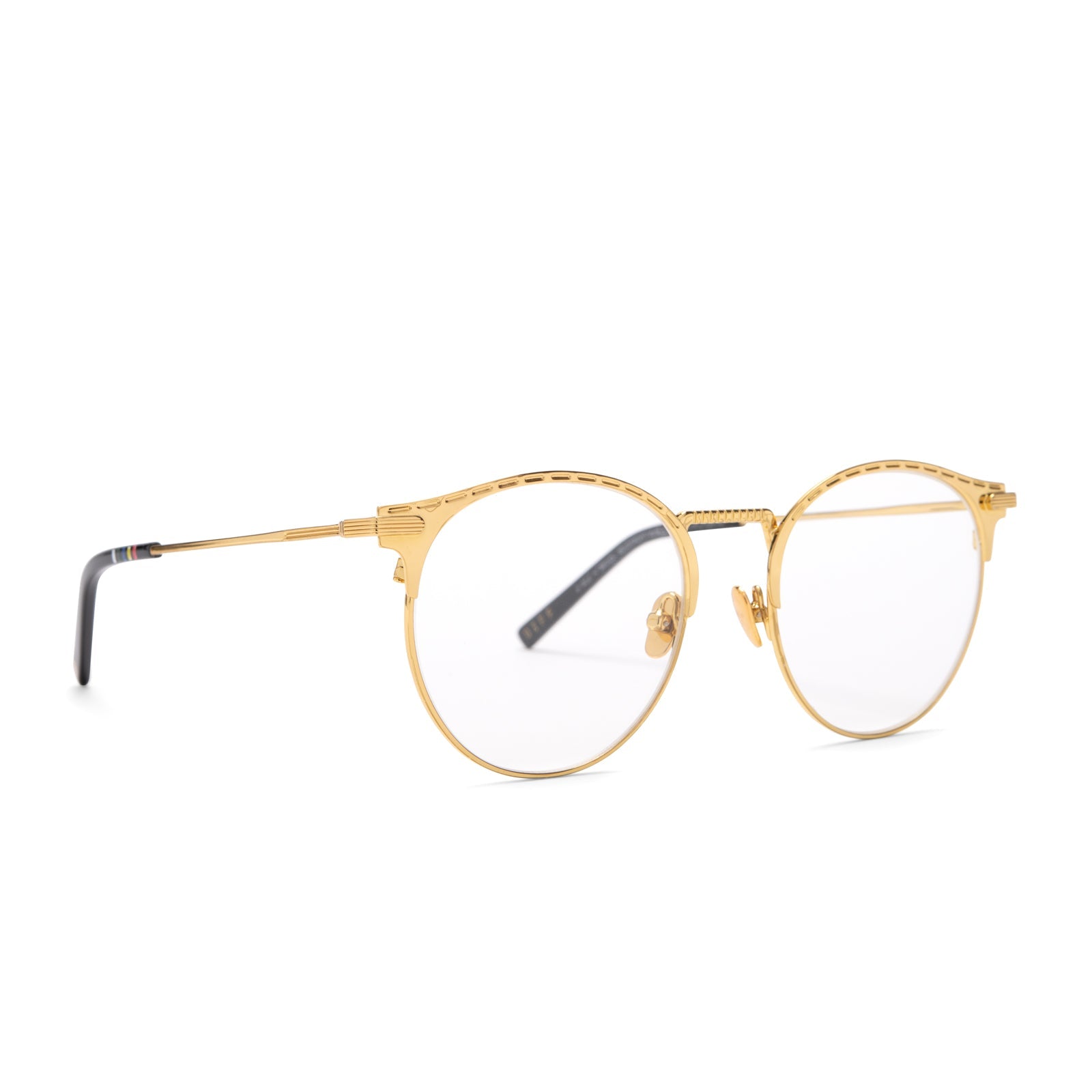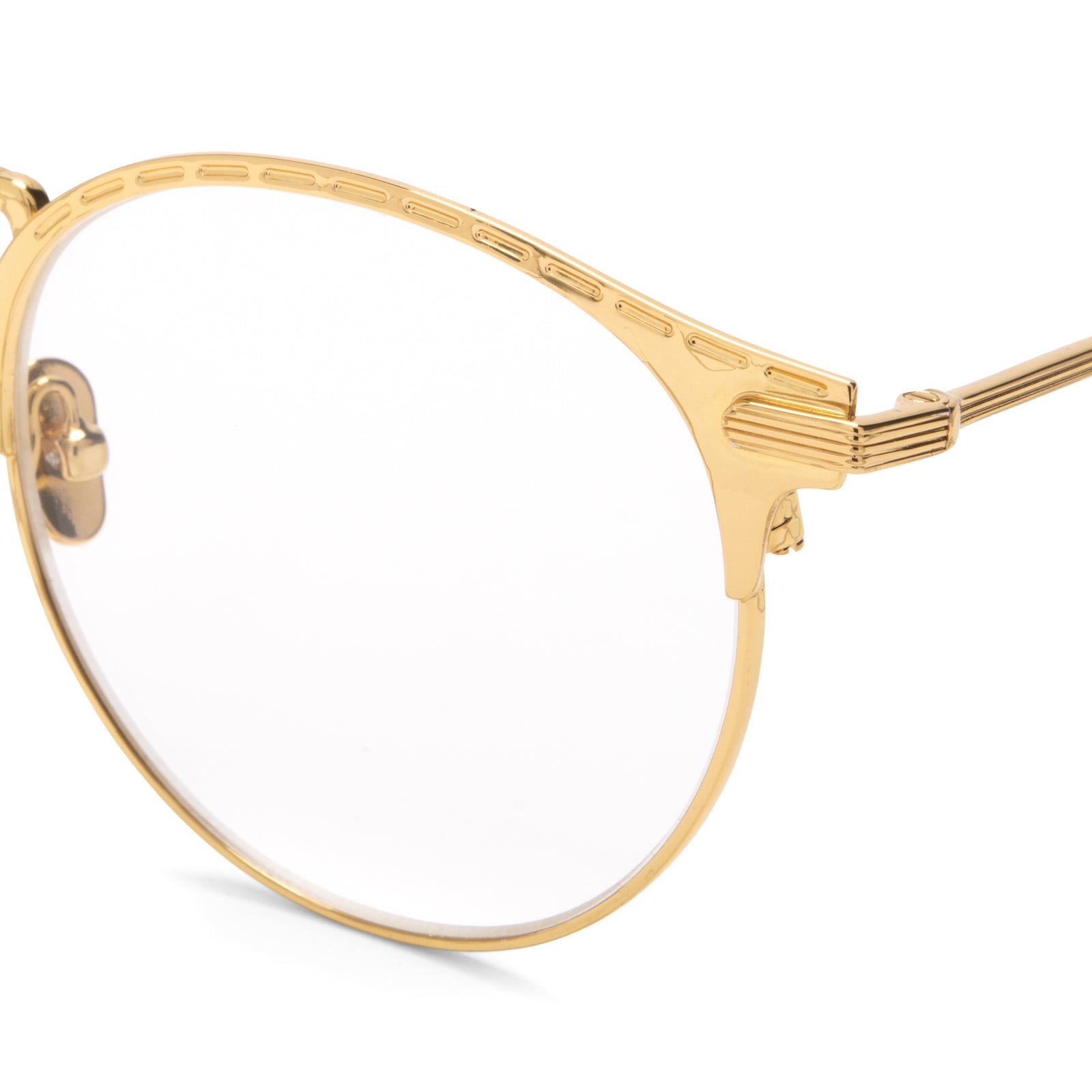 Featuring a gold metal frame in medium fit and customizable prescription lenses.