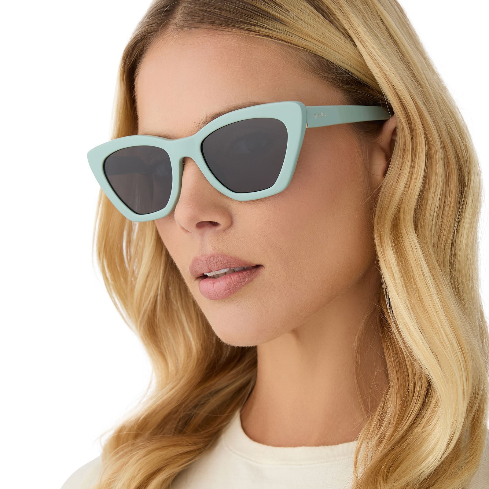 Go bold with the translucent Camila. These sunglasses feature an exaggerated cat-eye frame and nose pads for all-day comfort.
