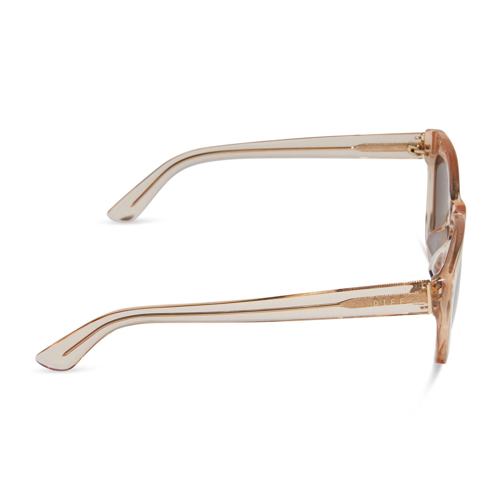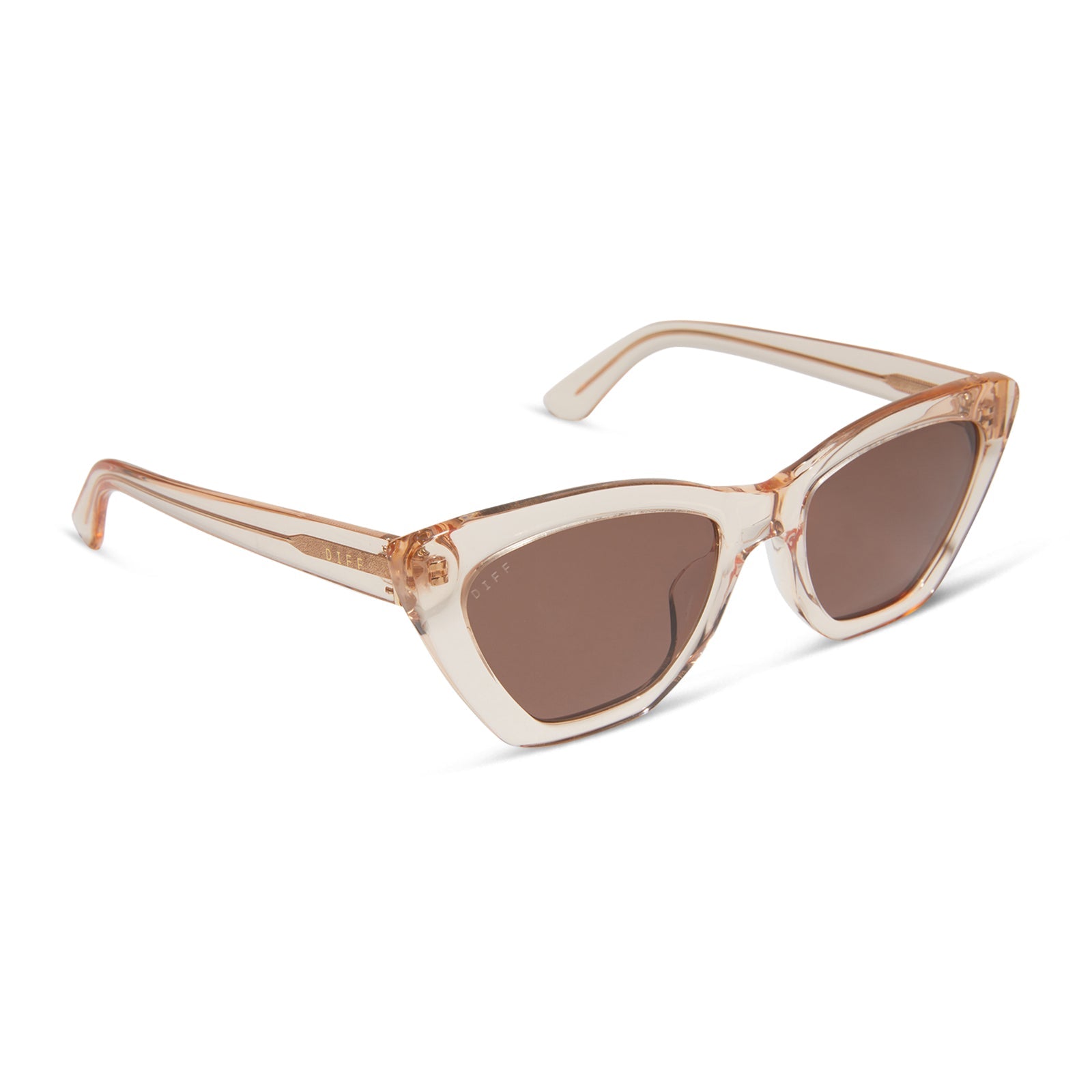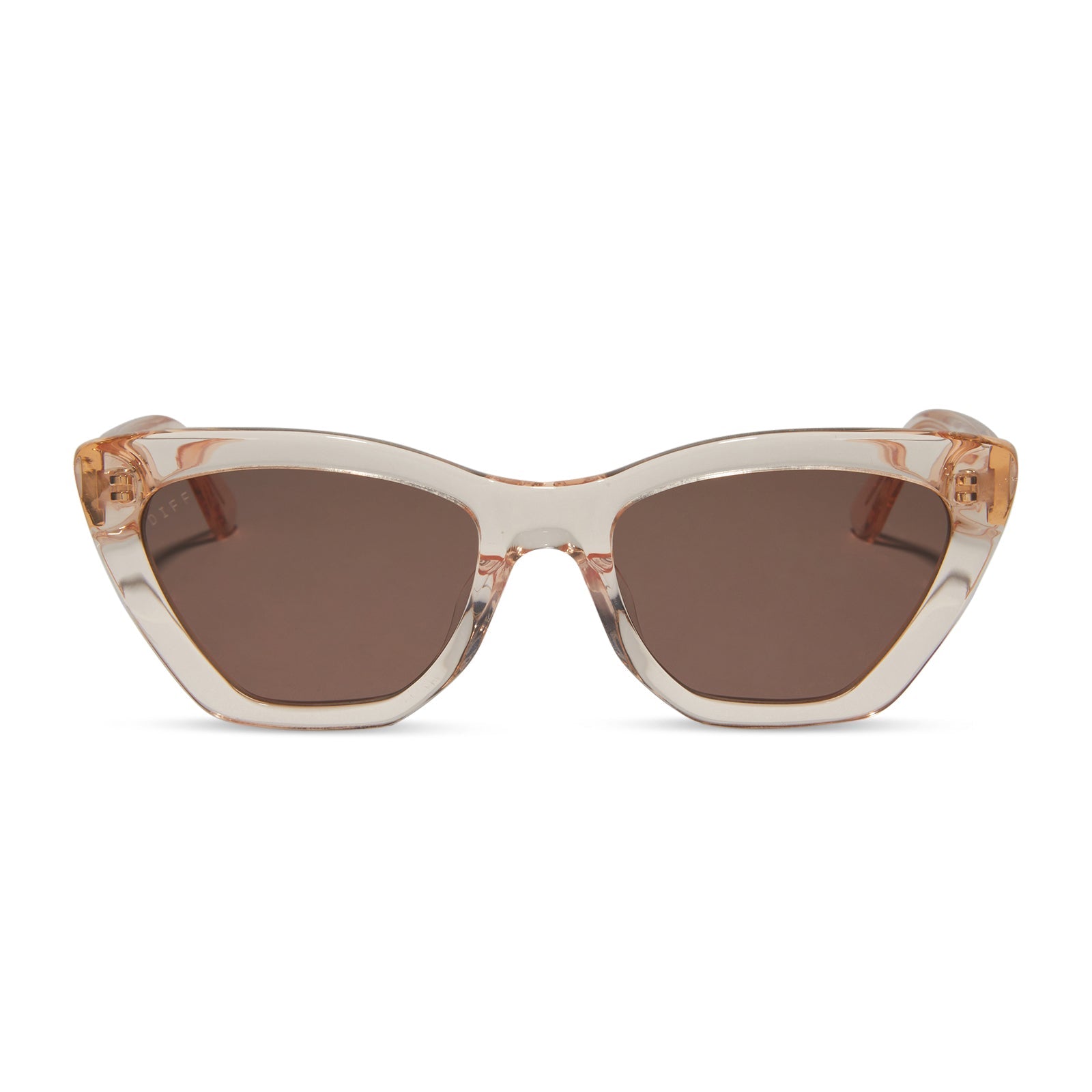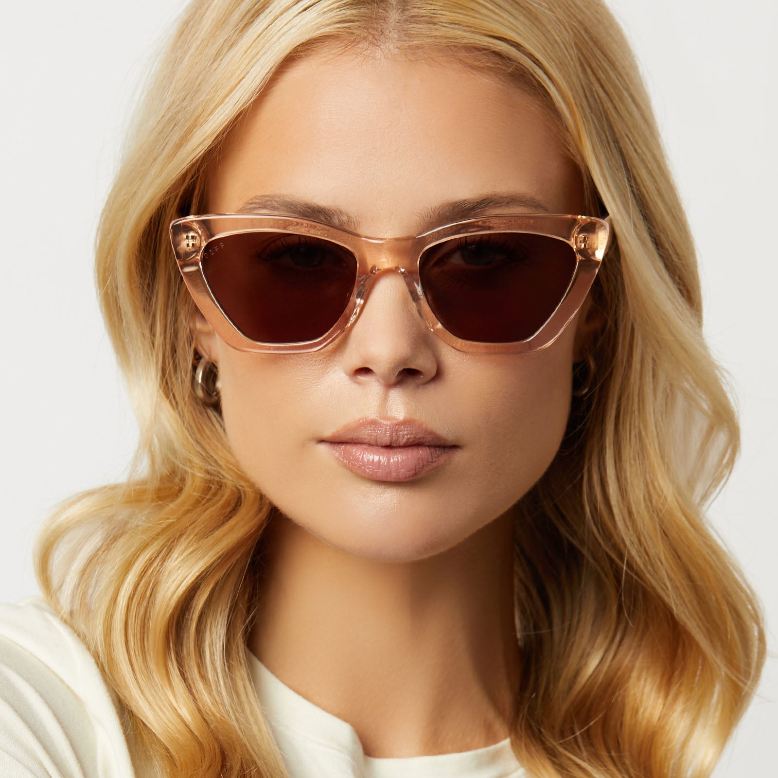 Go bold with the translucent Camila. These sunglasses feature an exaggerated cat-eye frame and nose pads for all-day comfort.