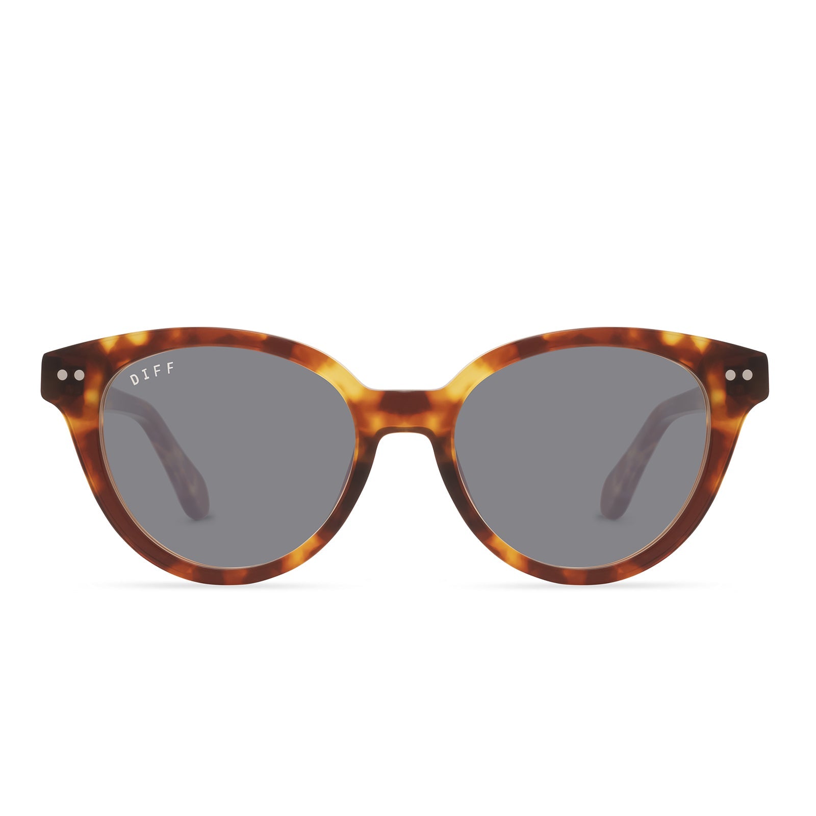 Stay sleek and stylish with our Carly glasses, featuring a chic rounded shape and rivet details.