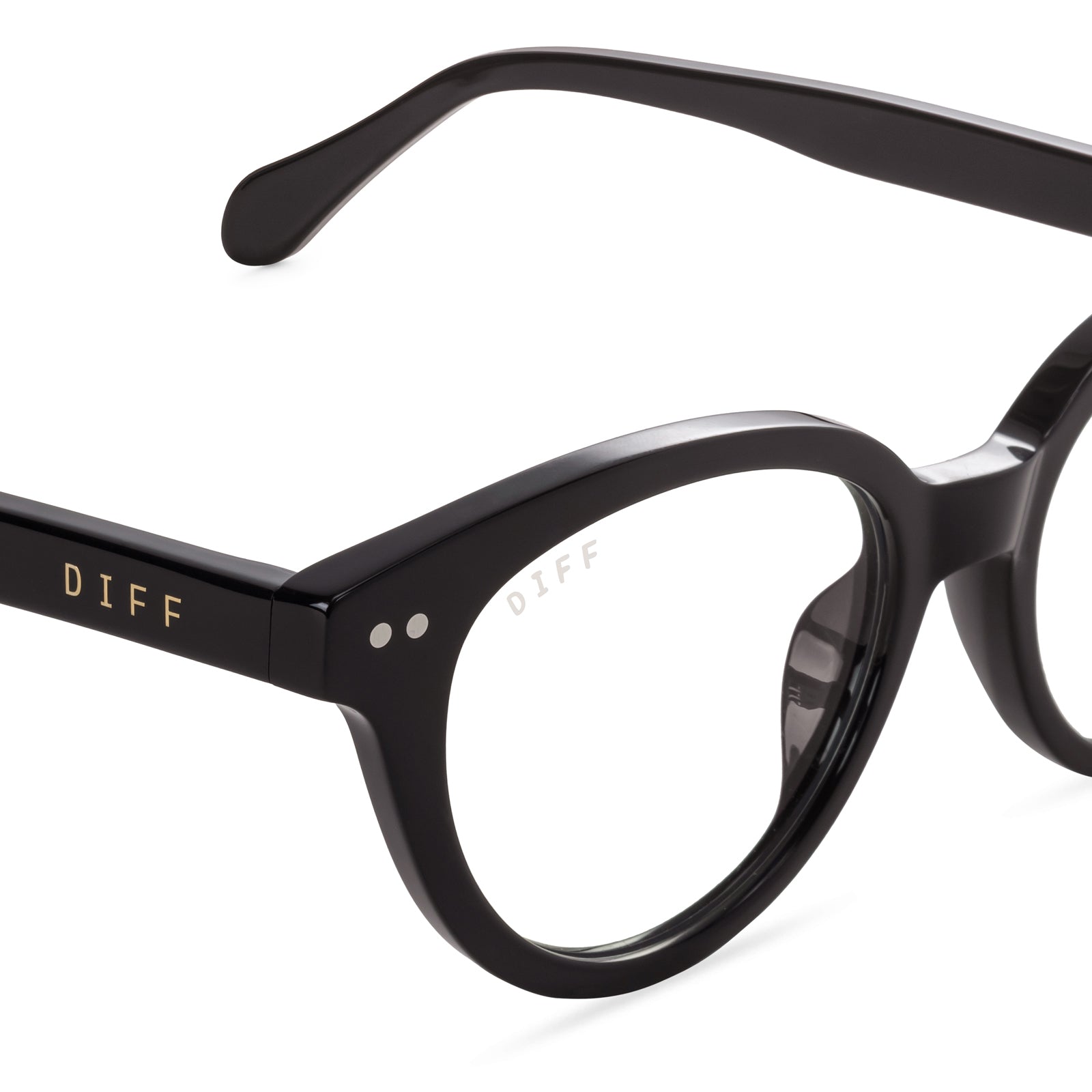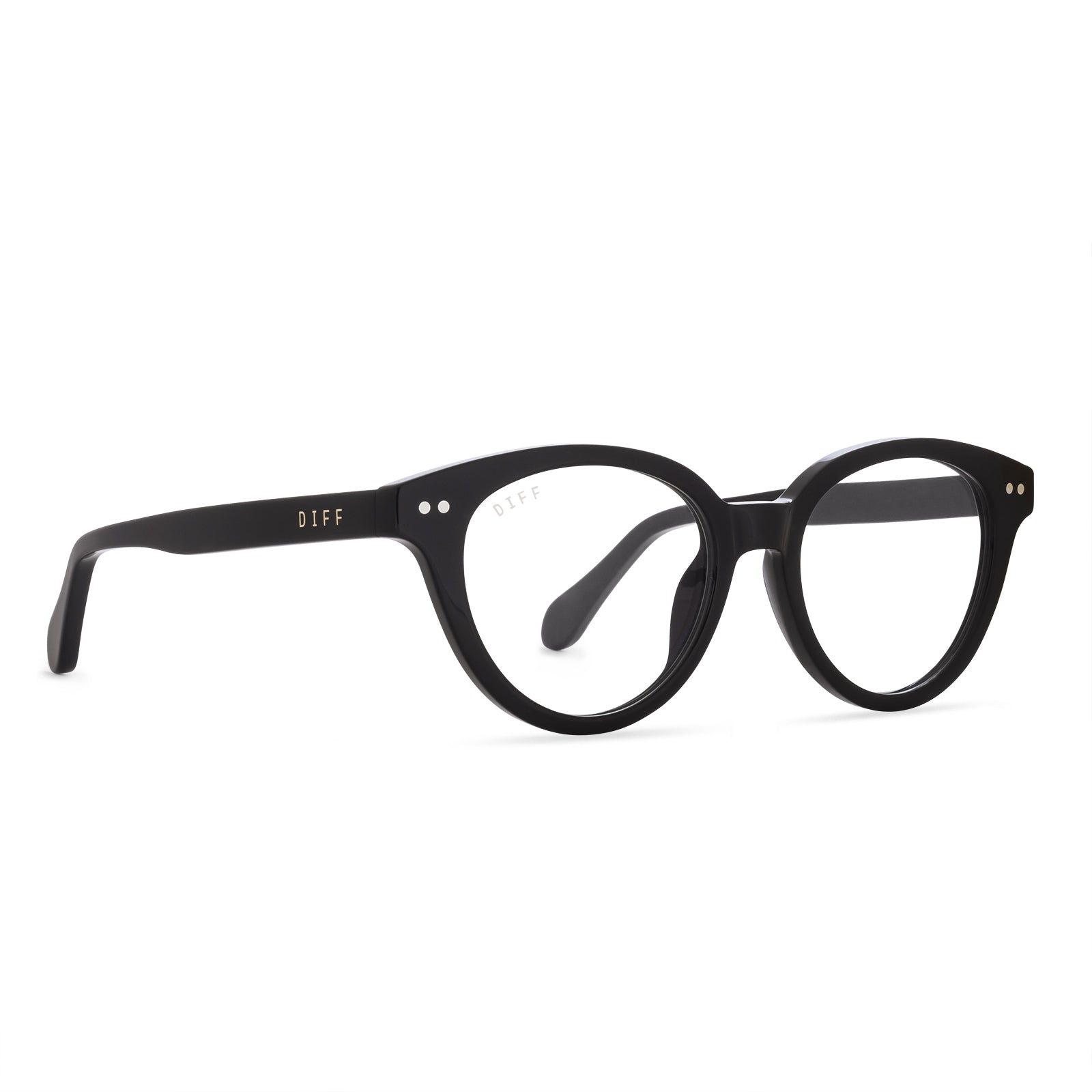 Scroll freely with the help of our Carly blue light blocking glasses, featuring a chic rounded shape and rivet details.