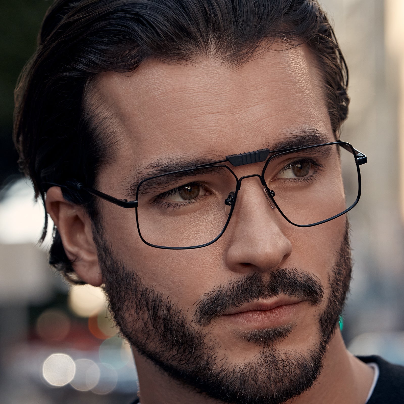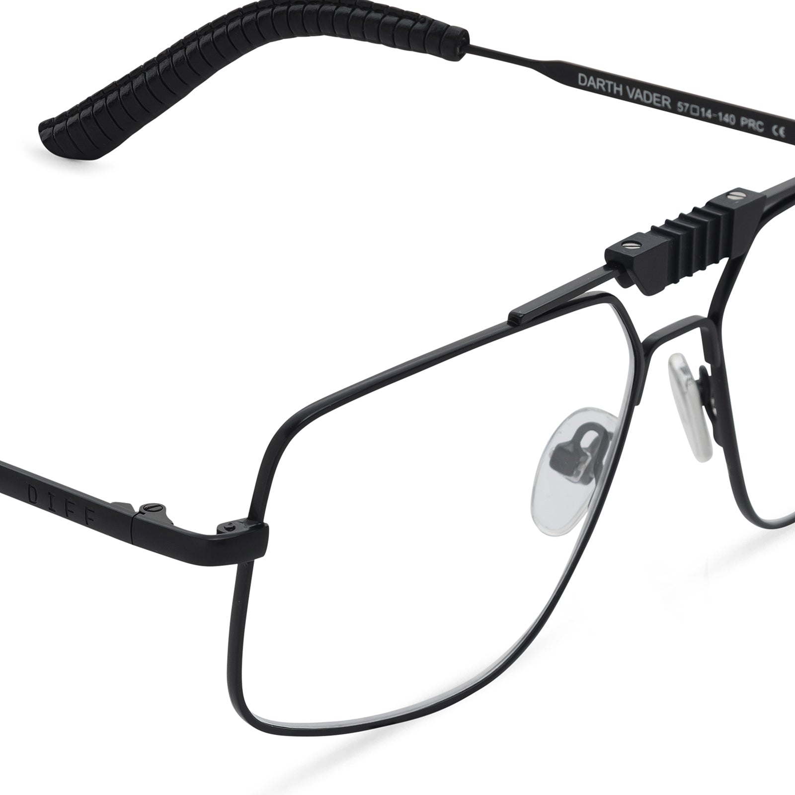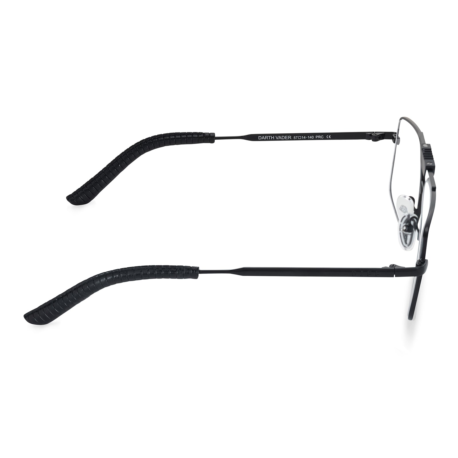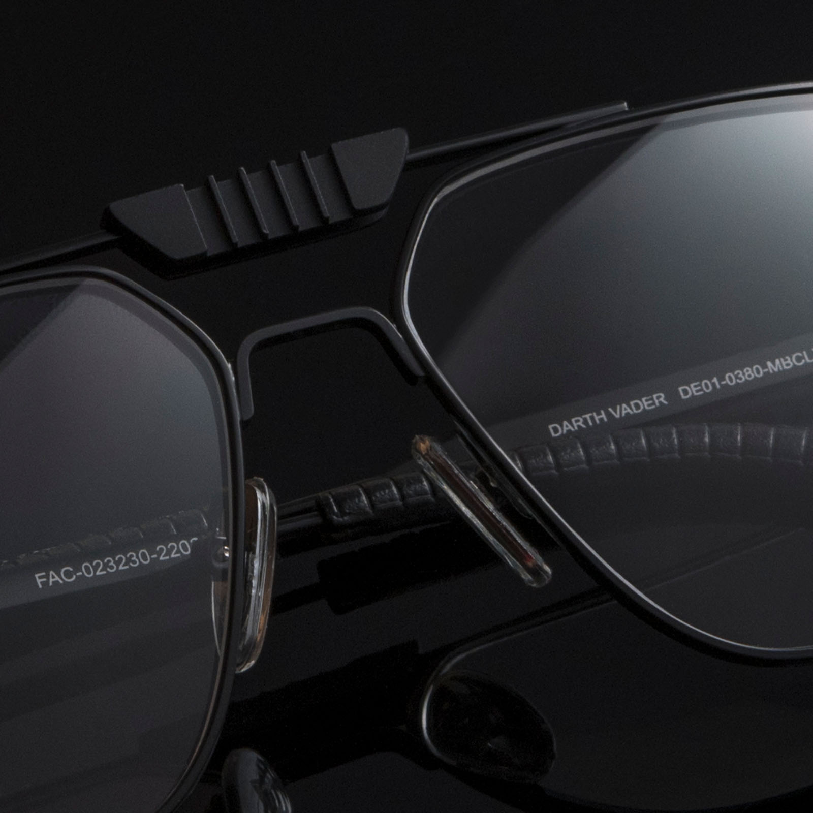 Our Darth Vader™ glasses feature an oversized aviator fit, unique bridge, and textured leather temple tips.