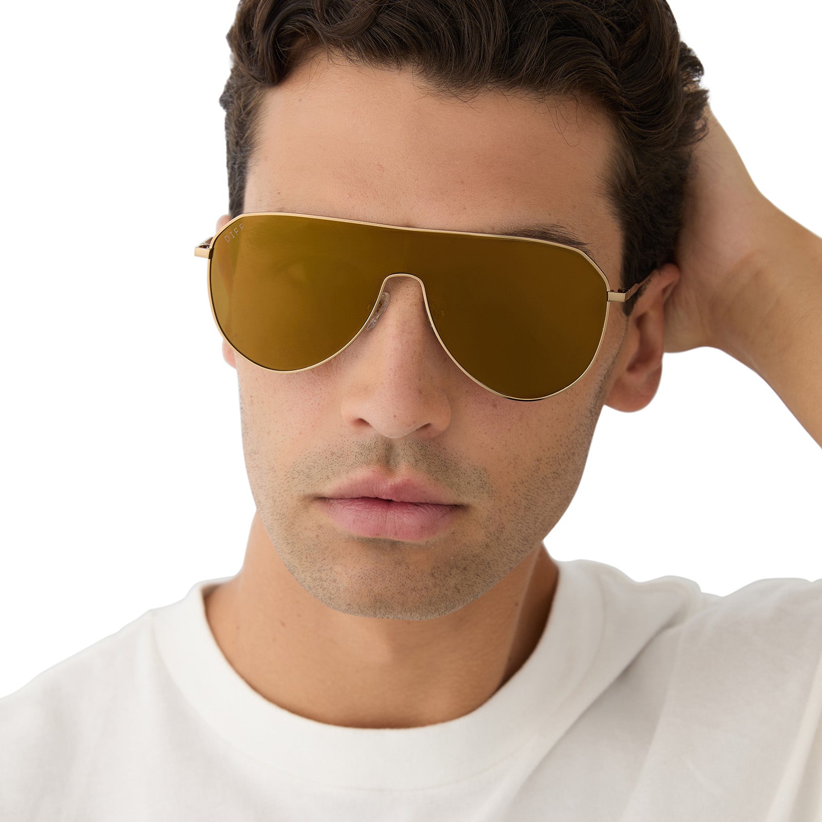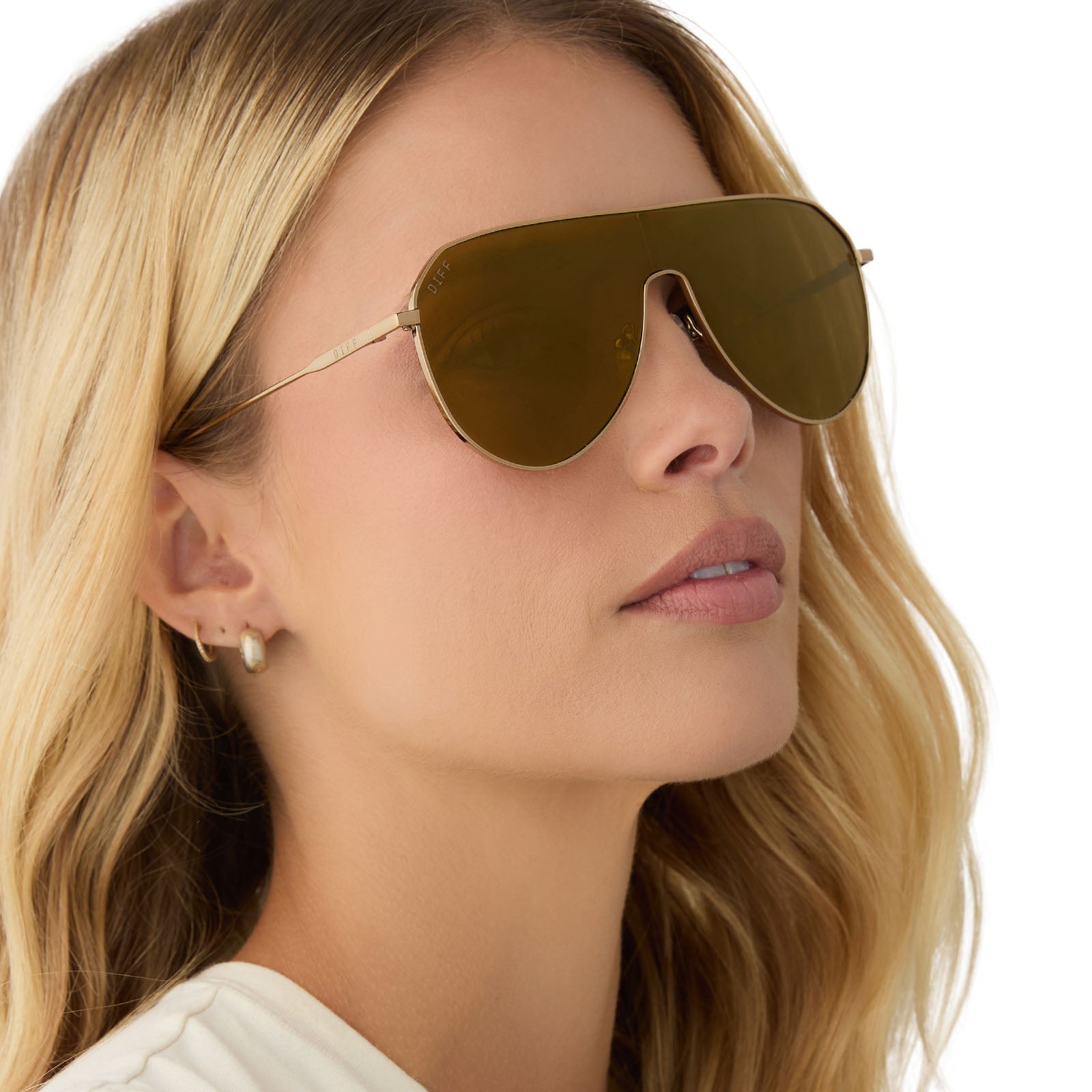 DASH SHIELD - COPPER METAL + BROWN GOLD FLASH SUNGLASSES