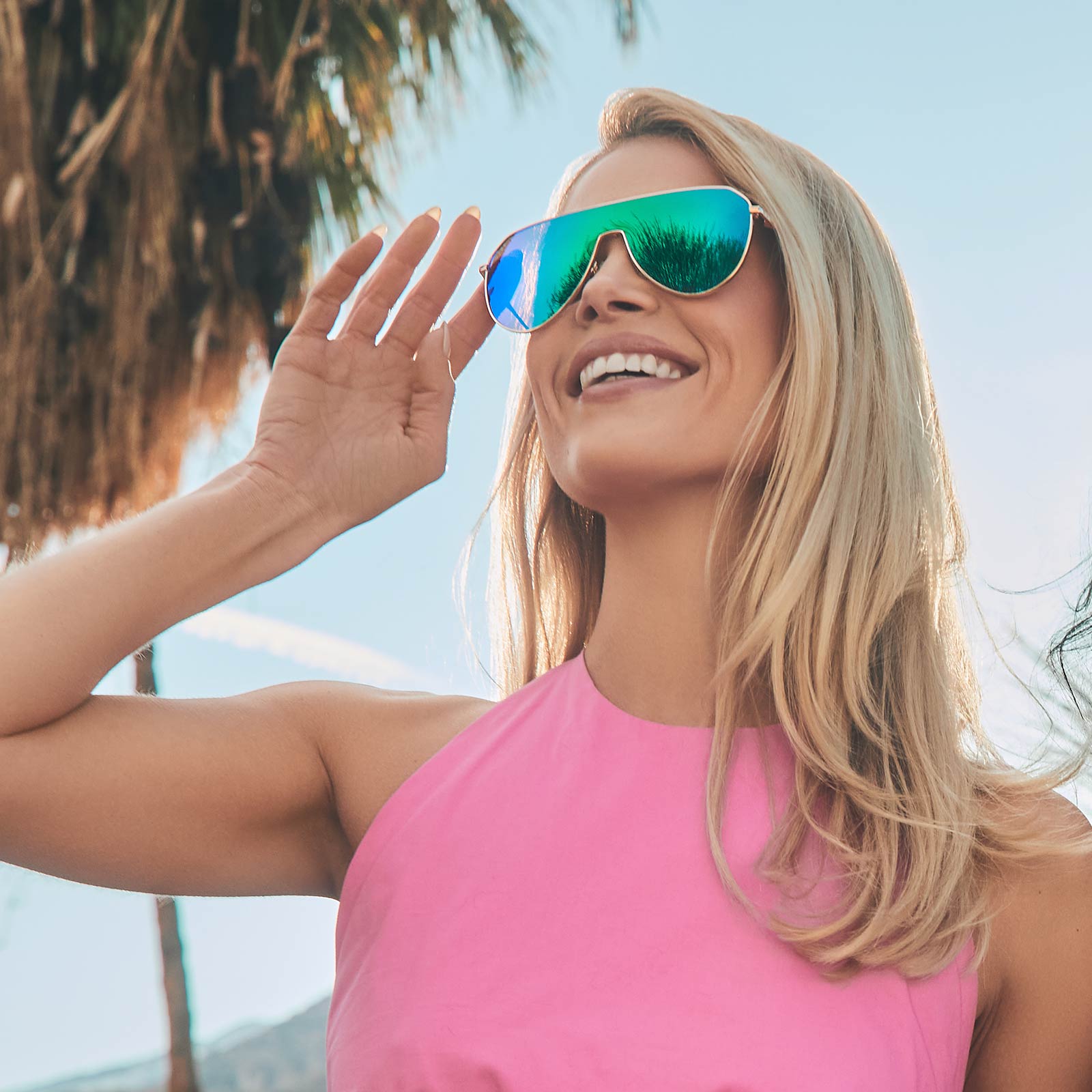 Trendy shield aviators meet the timeless Dash silhouette with reflective lenses and a sleek flat top bar. The classic metal frames and oversized lenses get a modern upgrade with a flat look and epic energy.