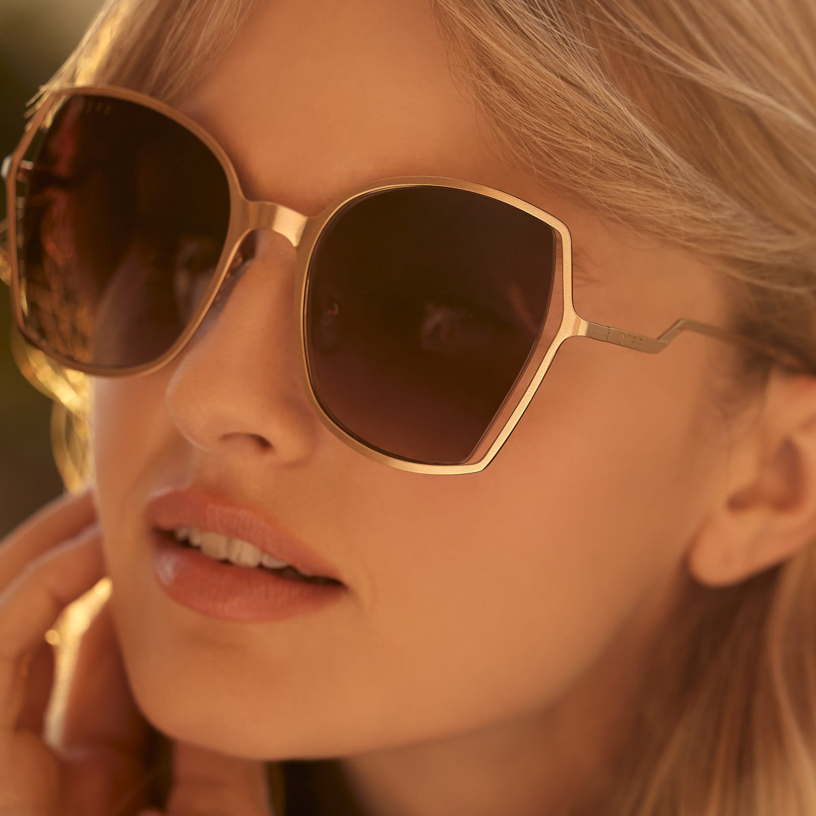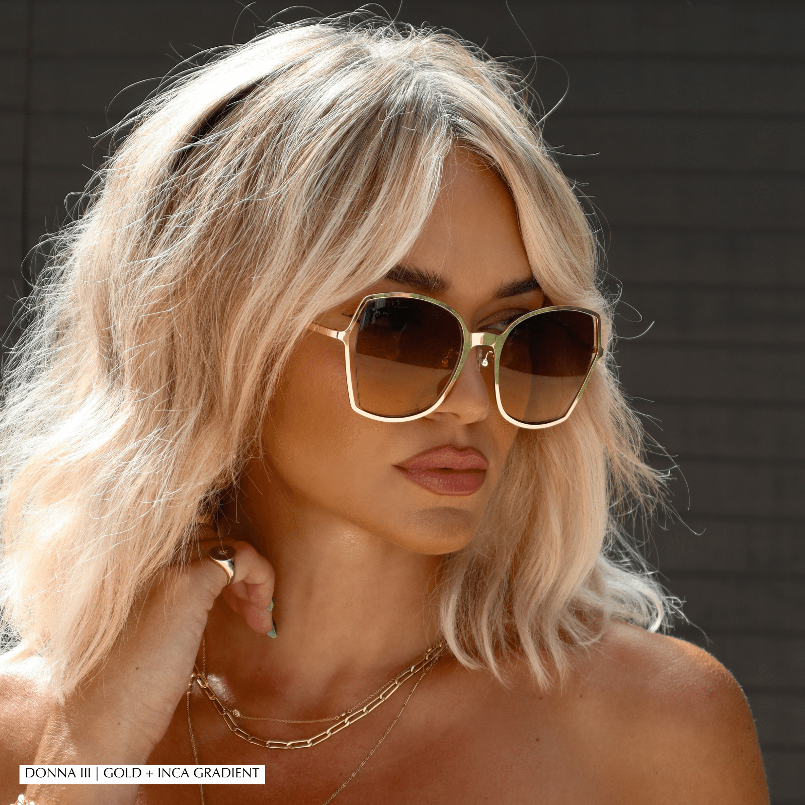 Say hello to the next big moment in oversized glam. With a sleek wire frame featuring chic, angled details and gorgeous gradient lenses, the Donna III brings vintage class to today's cutest sunglasses.