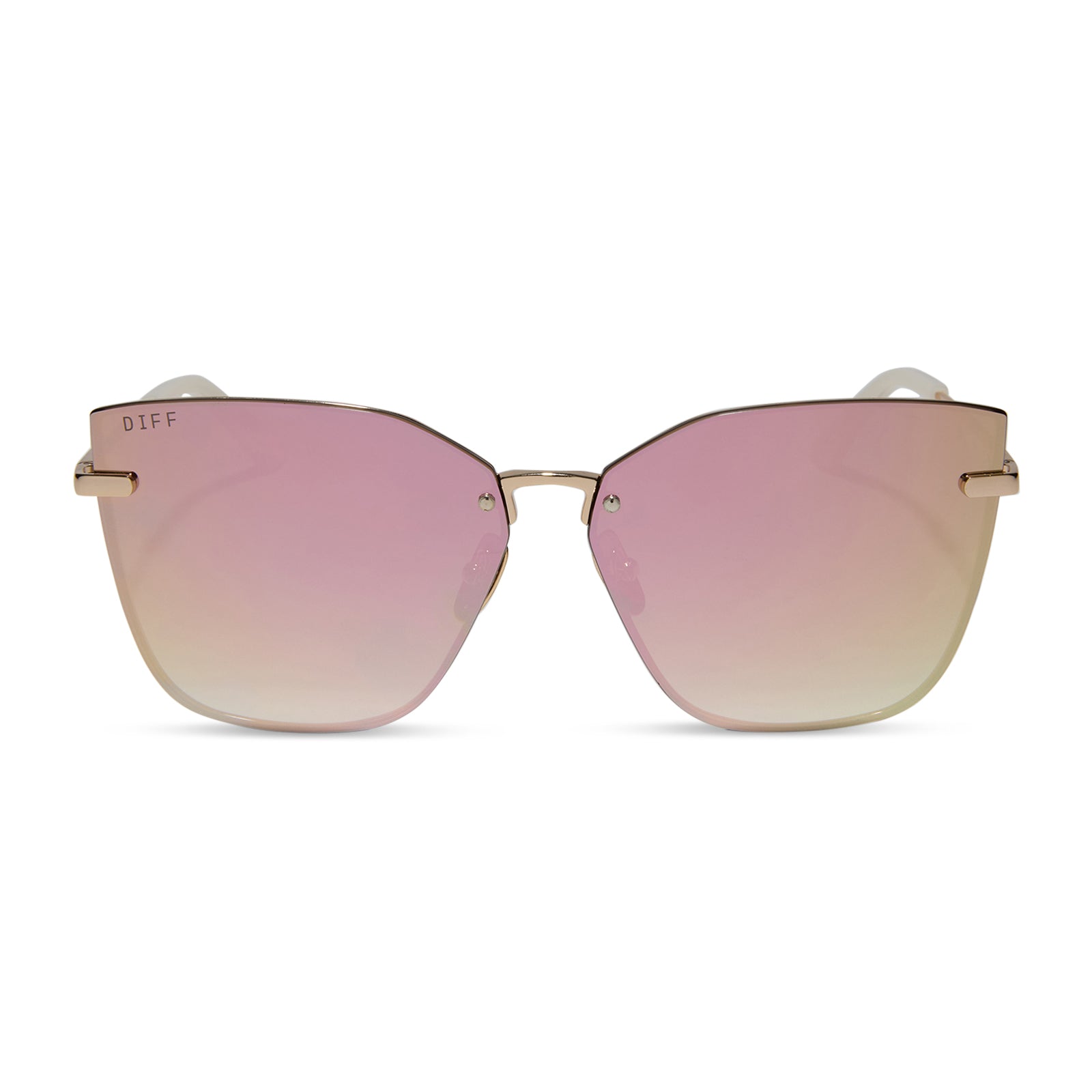 Dazzle wherever you go and make all the world your stage in rimless, shiny shades fit for a star. Featuring glam oversized lenses and delicate light gold frames, these sunnies make a star-studded statement.