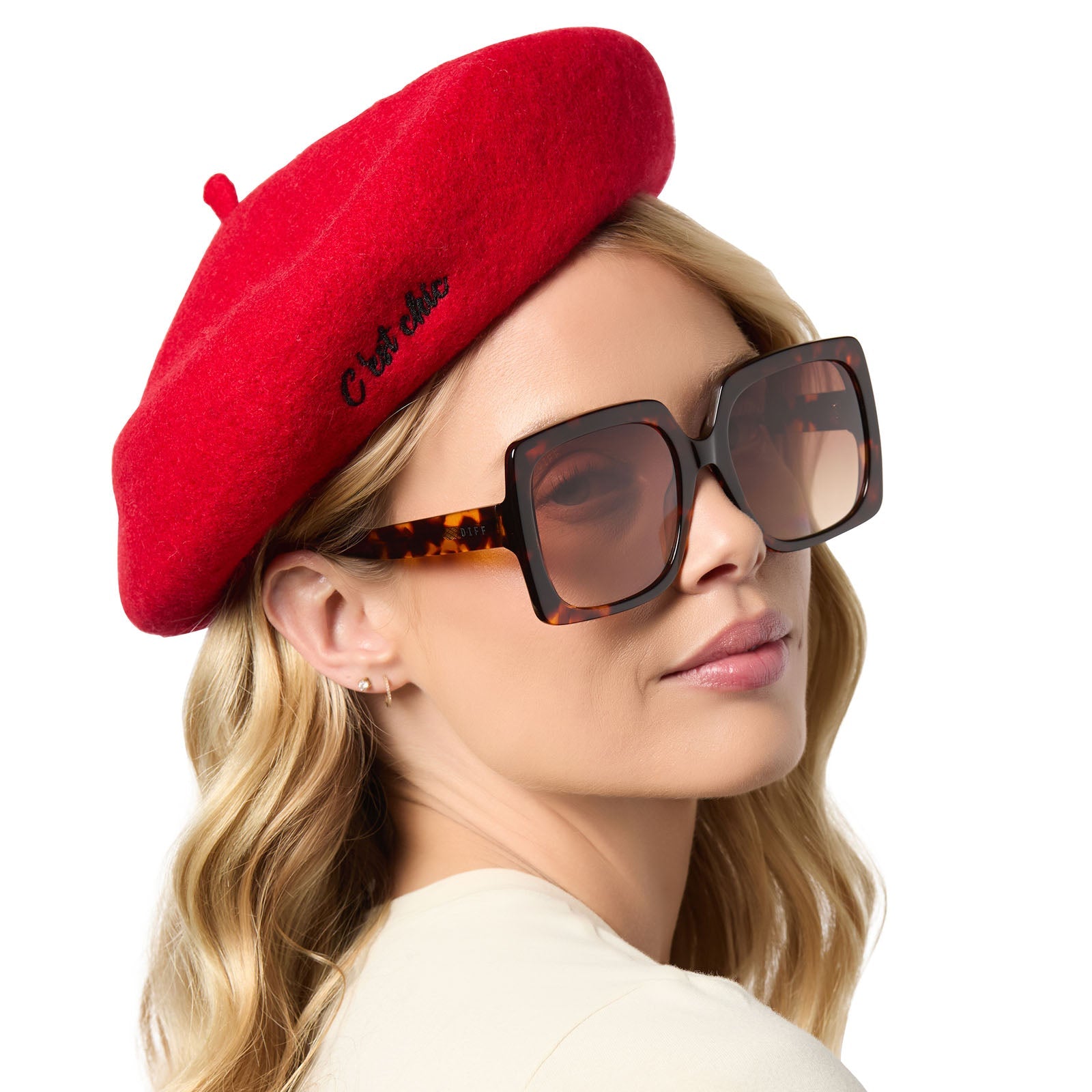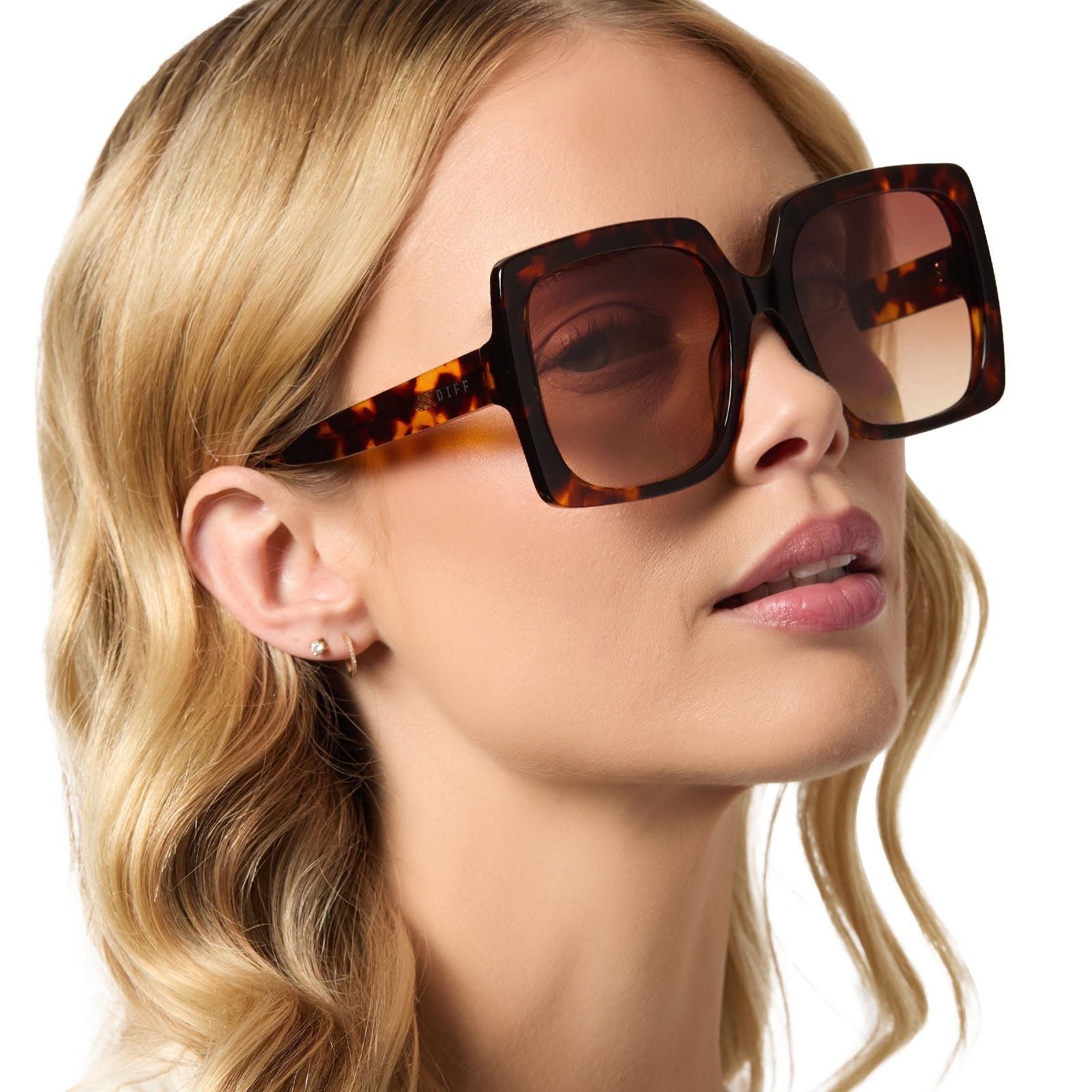 These shades know who's in charge. Make a stunning statement in glam, oversized tortoise frames that leave no doubt about your chic, cool attitude. The quote "Expensive + luxury" is classily hidden at the inner temple.