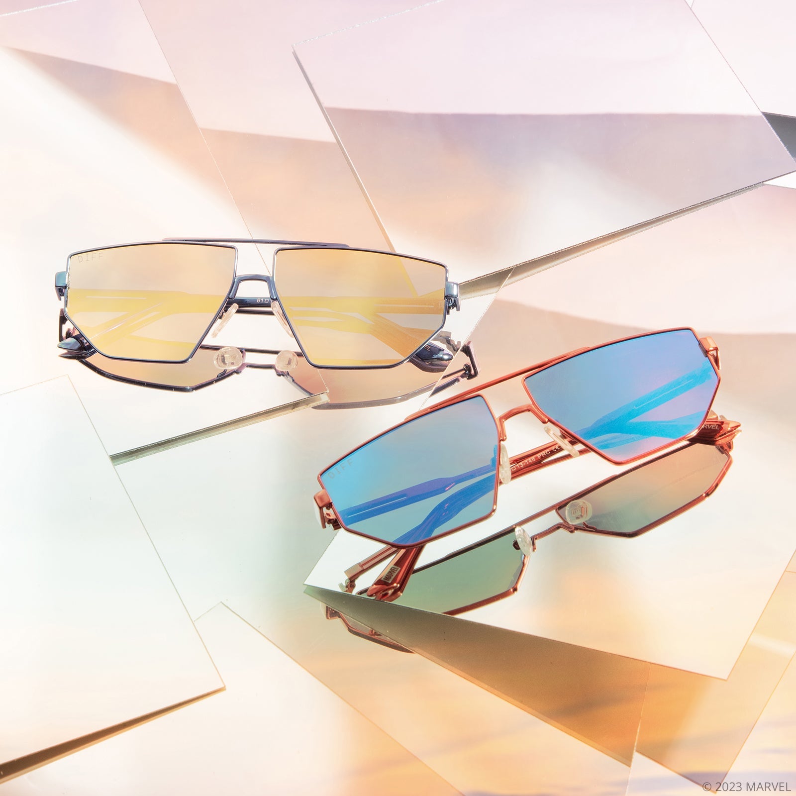 Modern angular aviators reach new levels of style with Marvel Studios’ Guardians of the Galaxy: Vol. 3 Galactic Heroes. Iconic metallic details and sleek, flat lenses create a timelessly cool style, on Earth or across the galaxy. © 2023 MARVEL