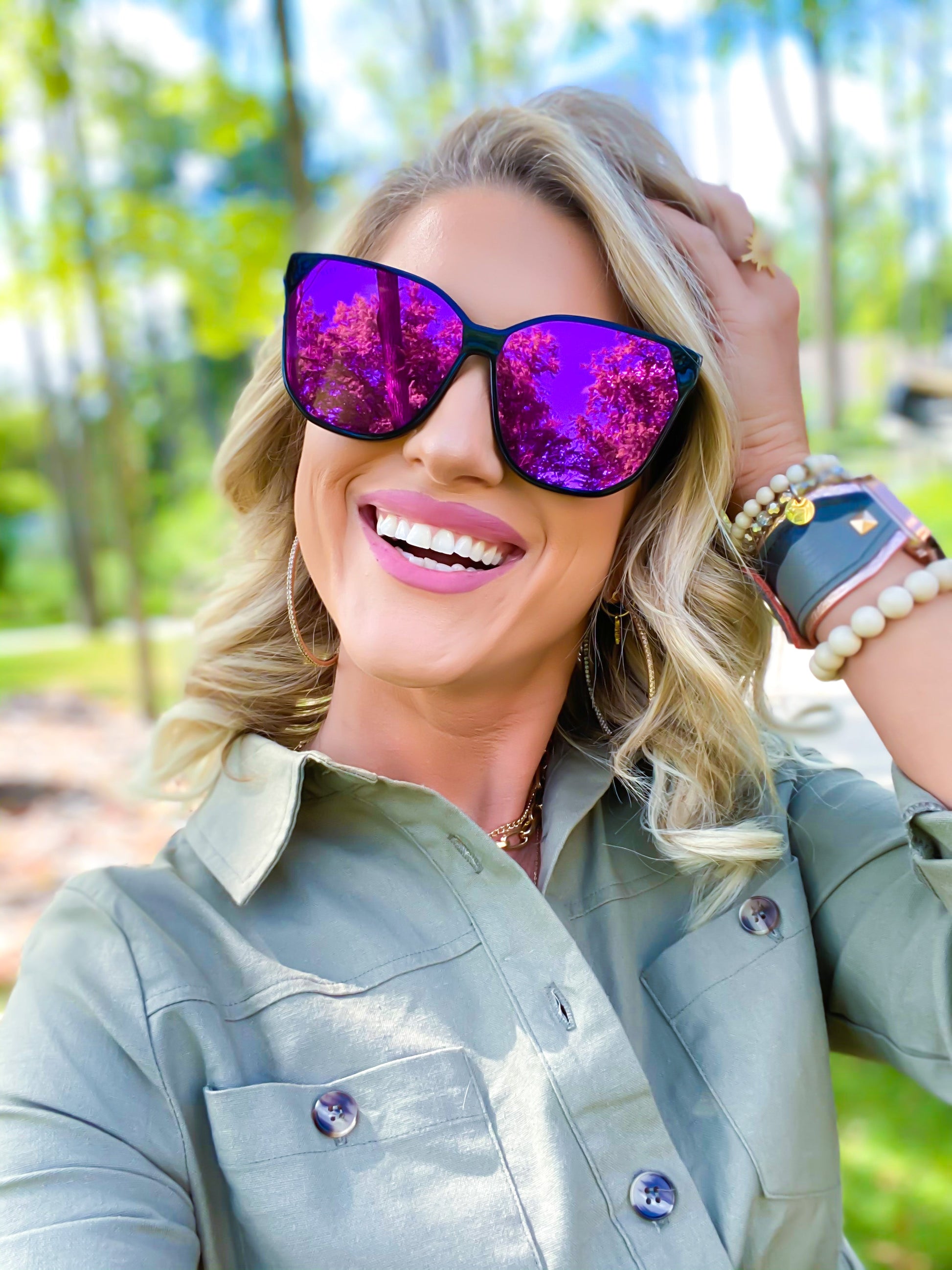 GIA - BLACK + PINK MIRROR SUNGLASSES