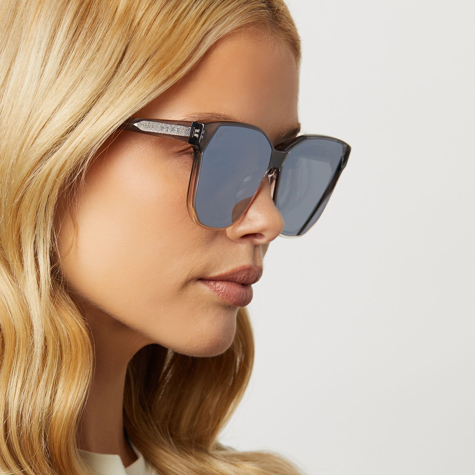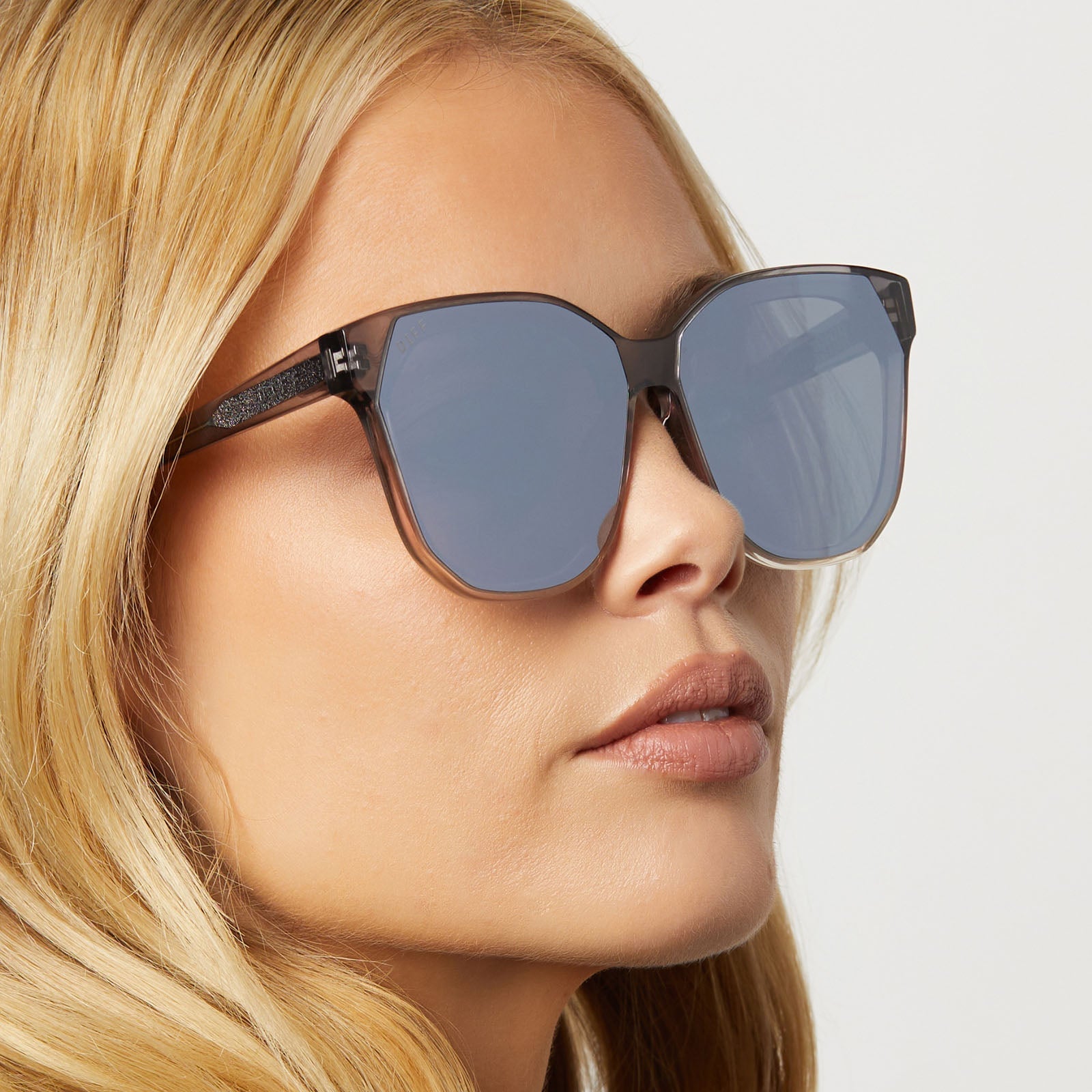 GIA - SMOKE ROSE CRYSTAL OMBRE + SILVER FLASH SUNGLASSES