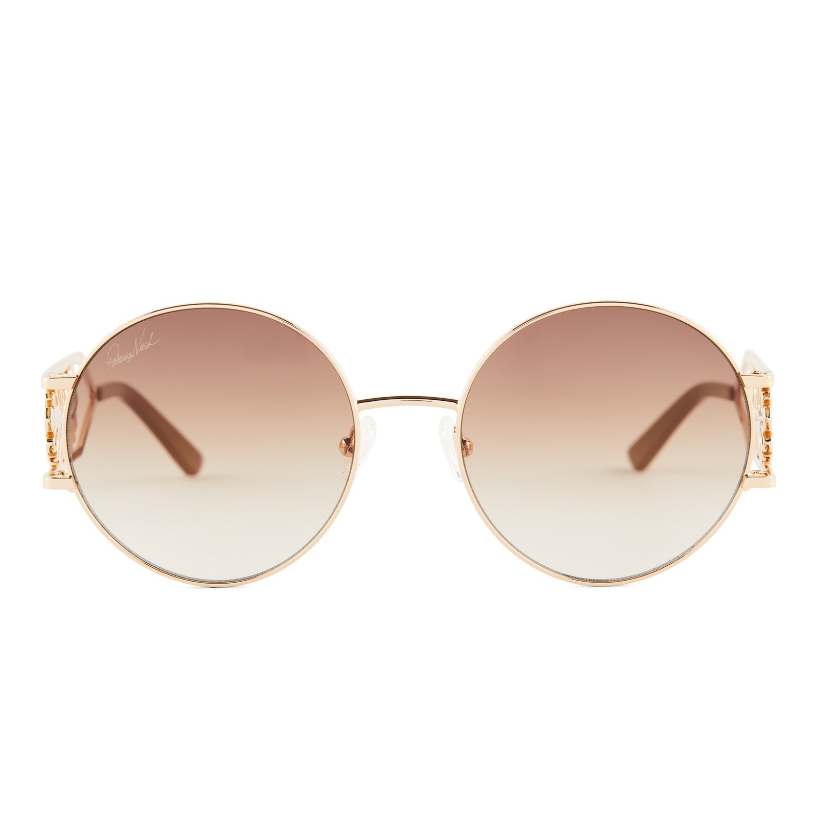 Classic, cute, and upgraded. The Faye sunnies take timeless rounded lenses and give them a pop of modern flair. Sleek and thin wire frames meet thicker temples featuring intricate and alluring metalwork designs for a truly elegant statement.