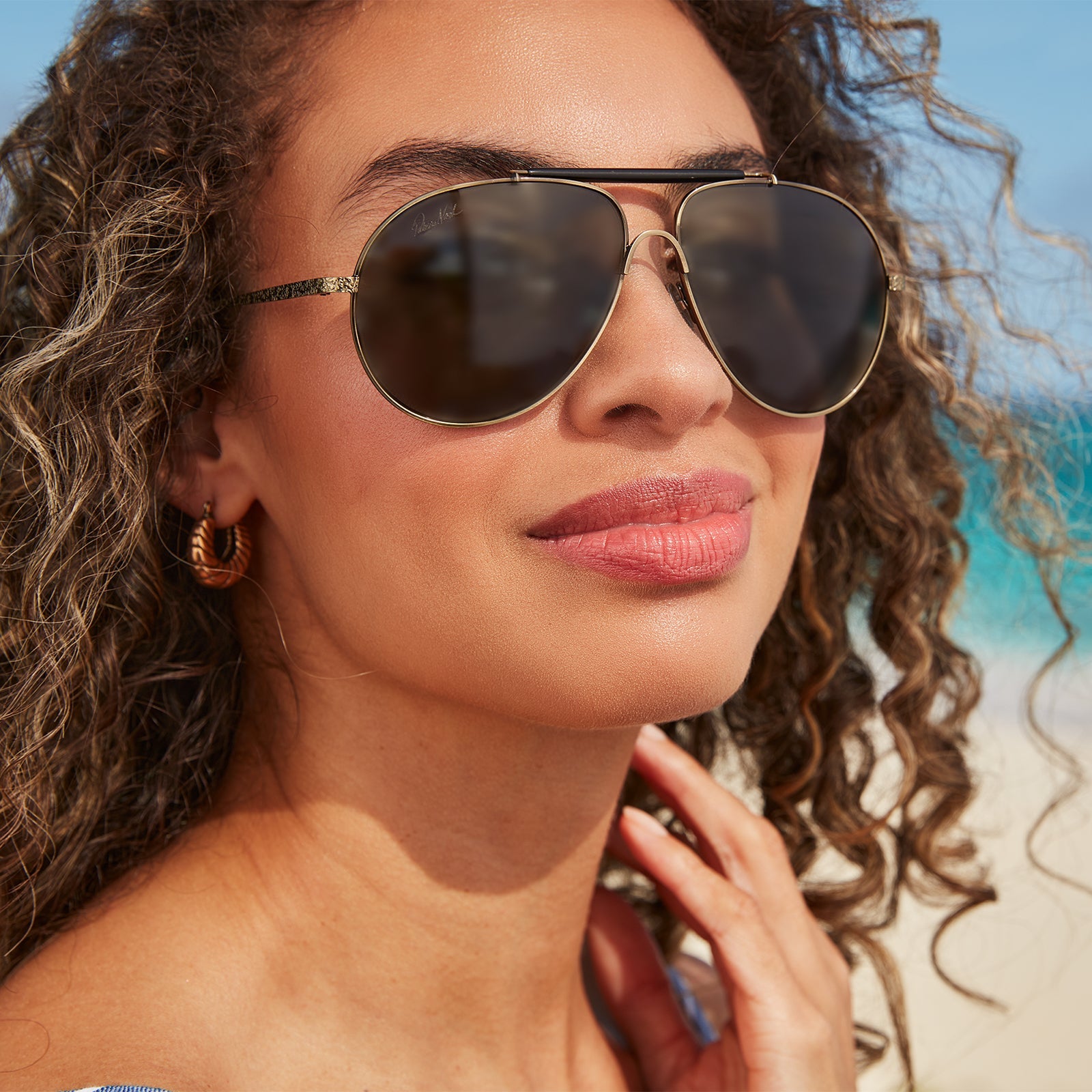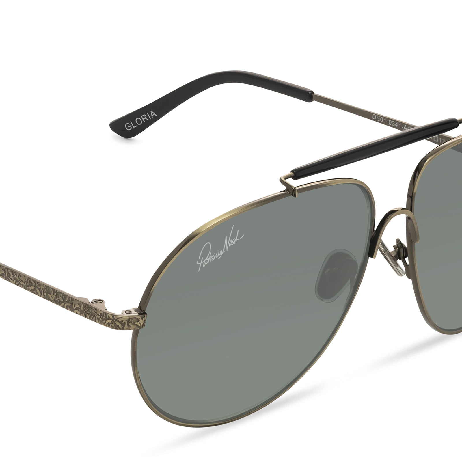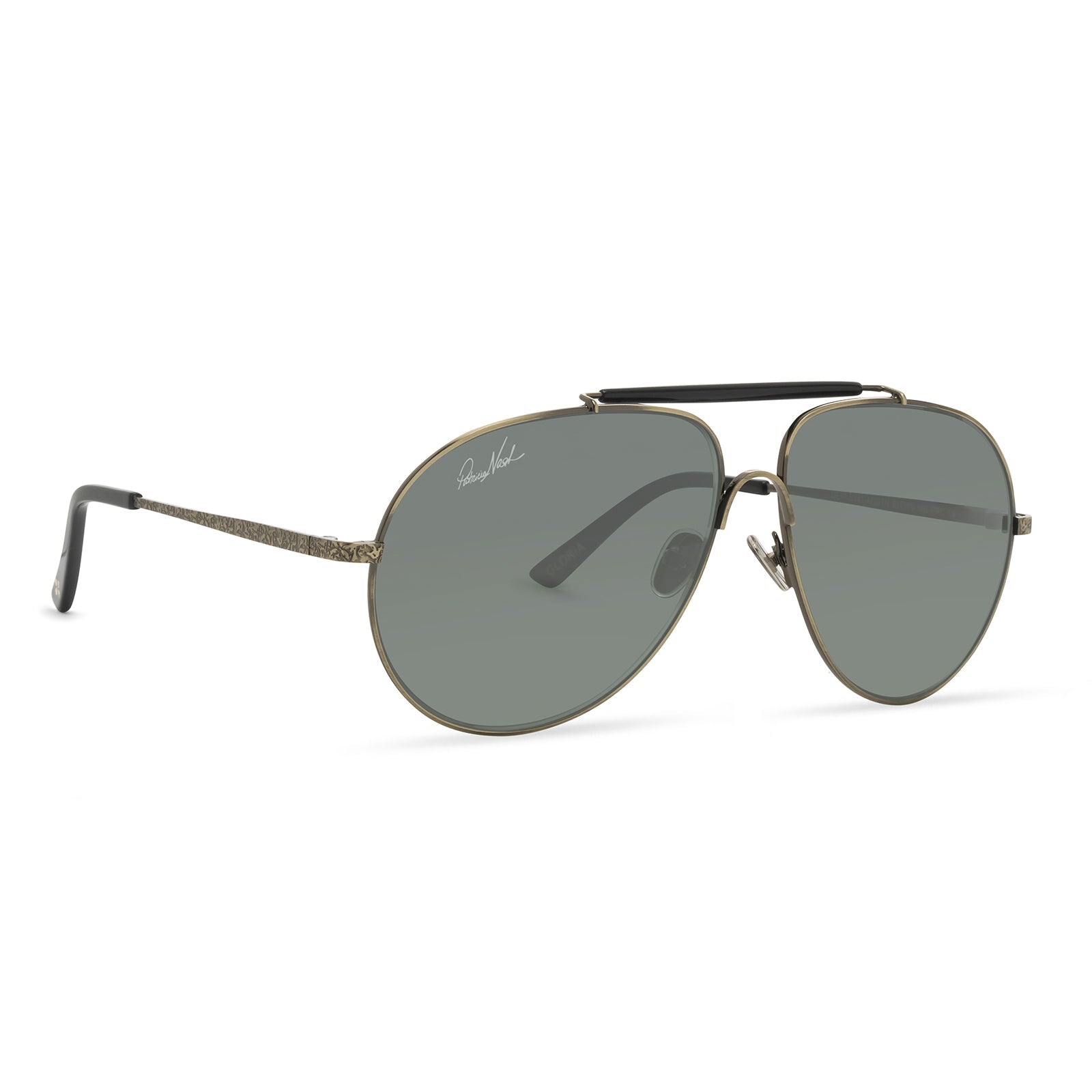 Vintage style meets modern design in our Gloria aviators. Inspired by the chic Gloria Grahame, these sunglasses offer a striking top bar and bridge as well as textured temples.