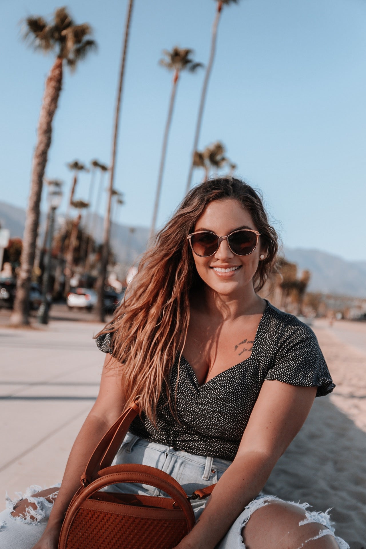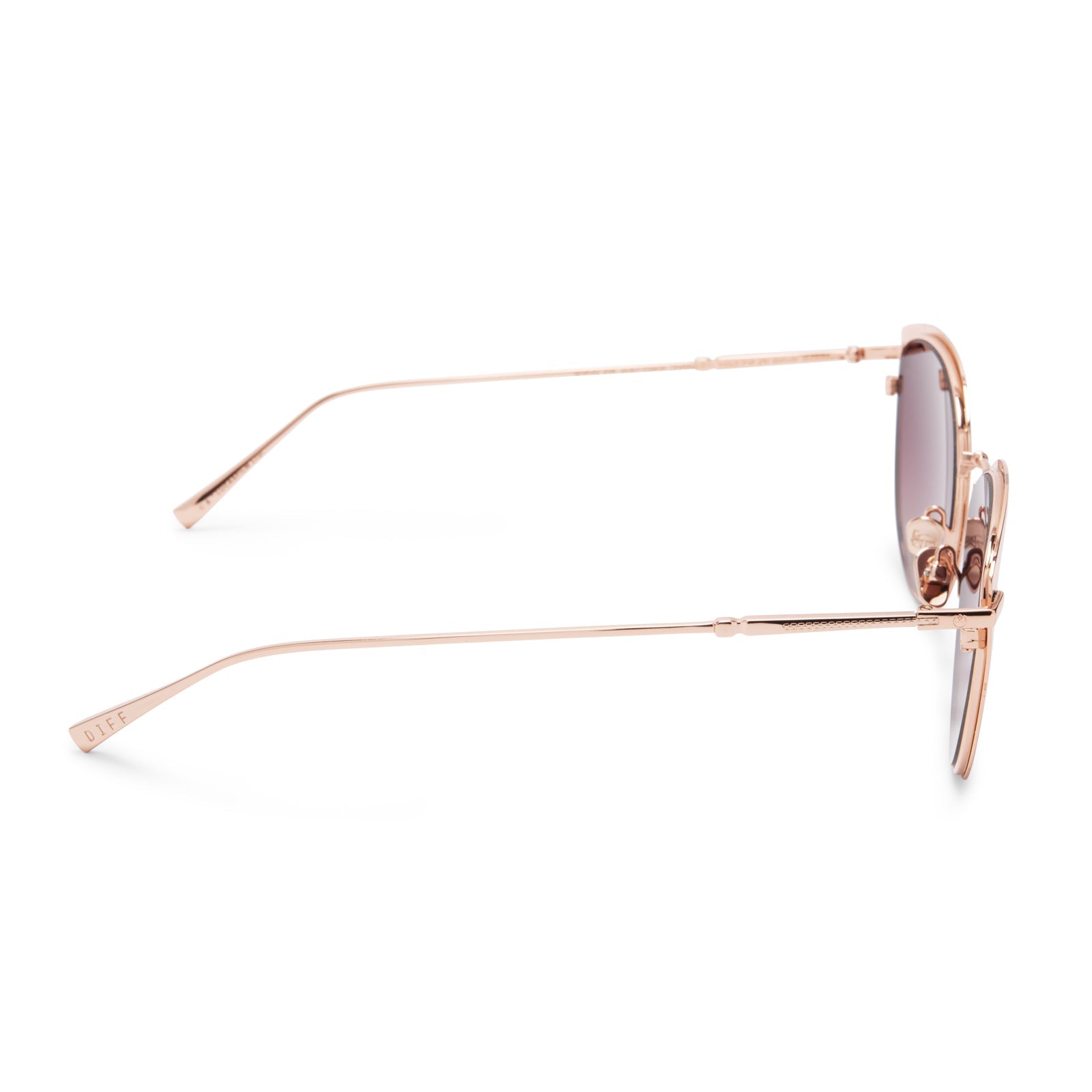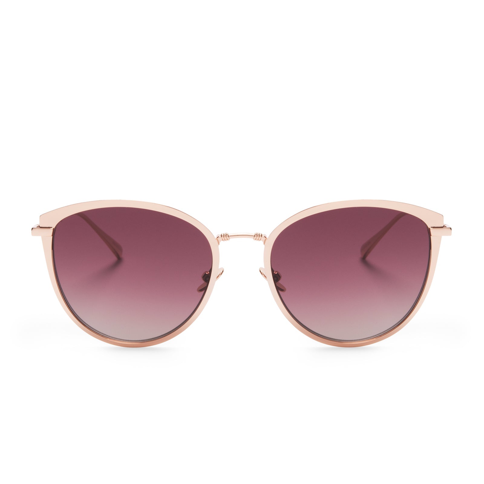 Featuring a rose gold metal cat eye frame in medium fit, and luxe polarized lenses.
