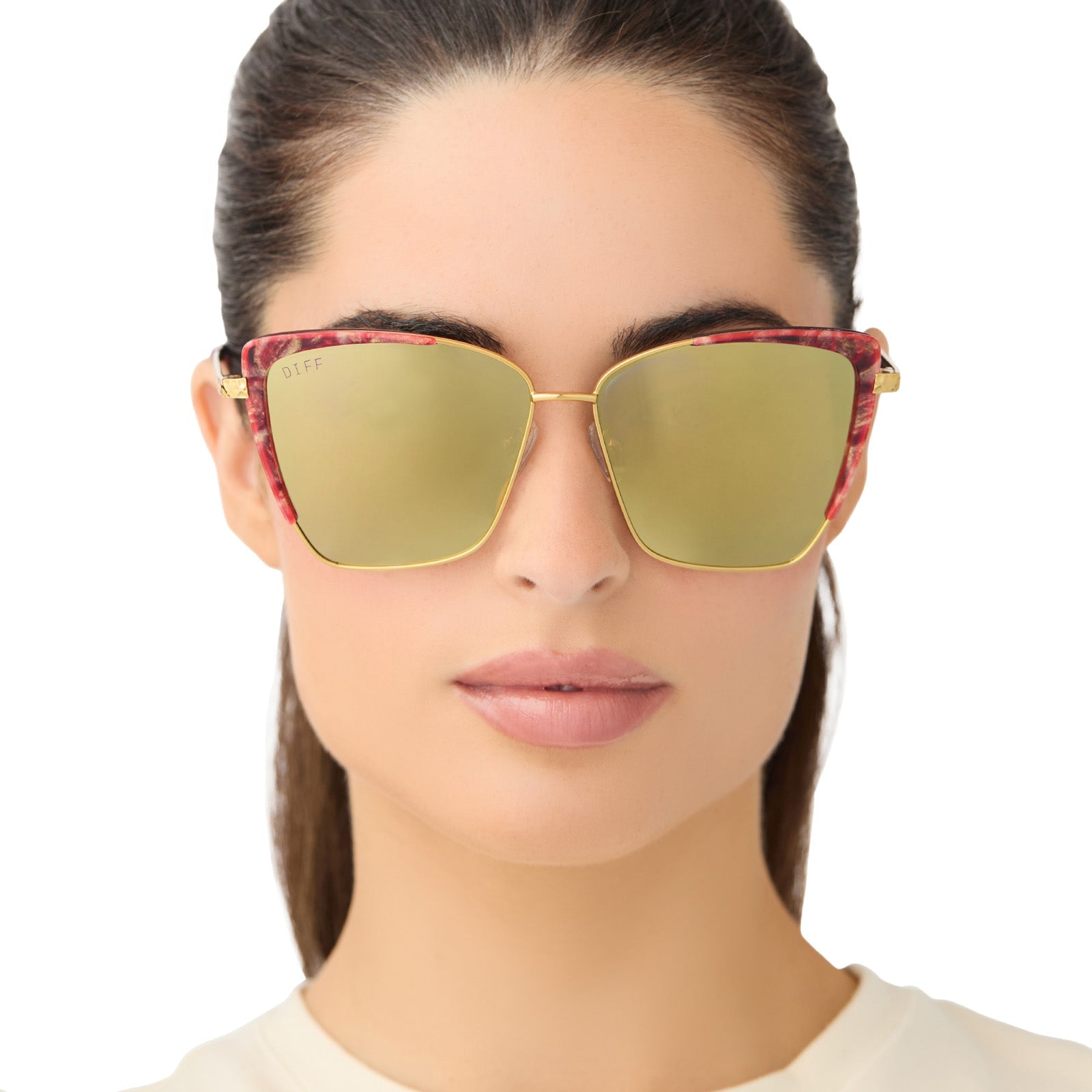 QUEEN AMIDALA™ - MARBLED NABOO™ ROYAL RED + HAMMERED GOLD + GOLD MIRROR + POLARIZED SUNGLASSES