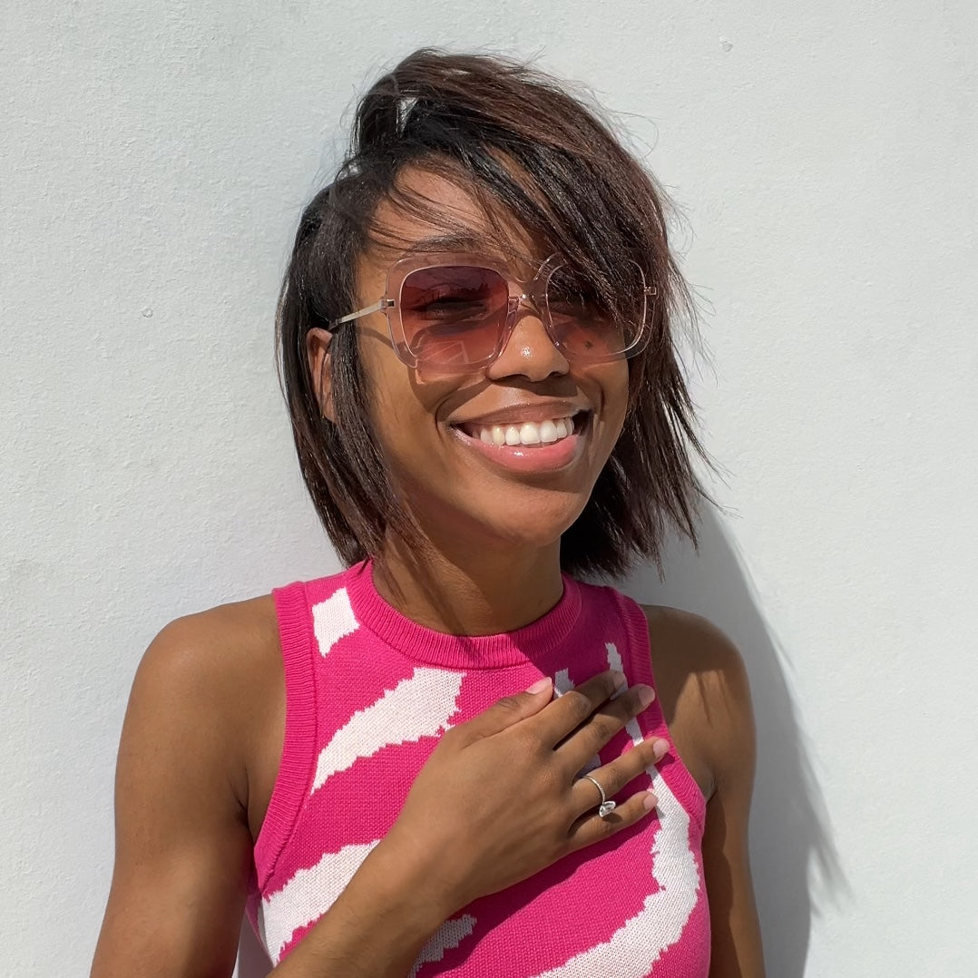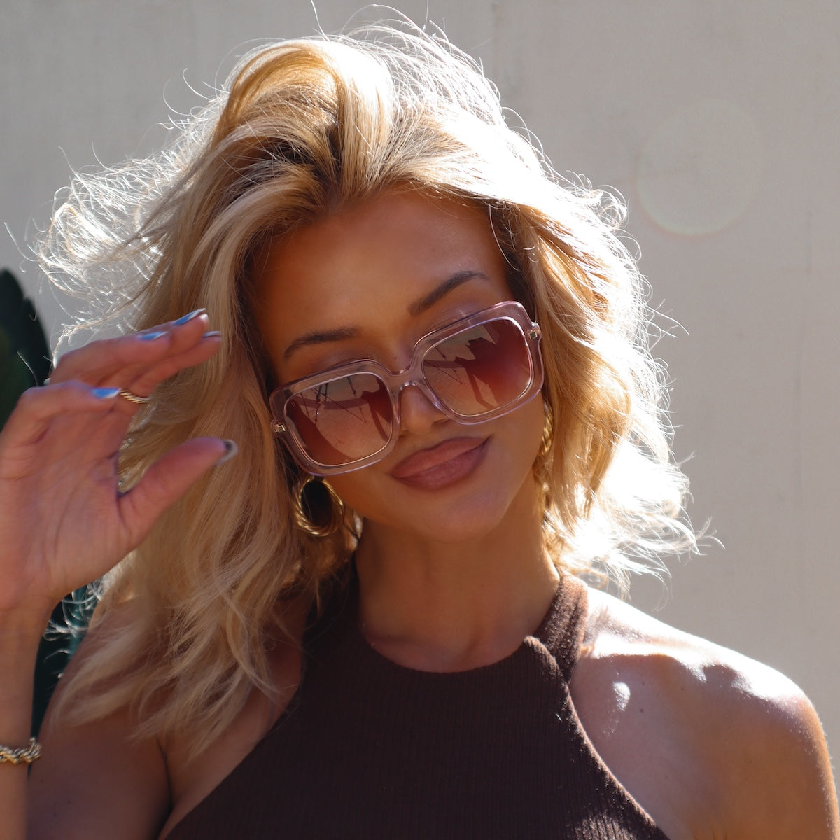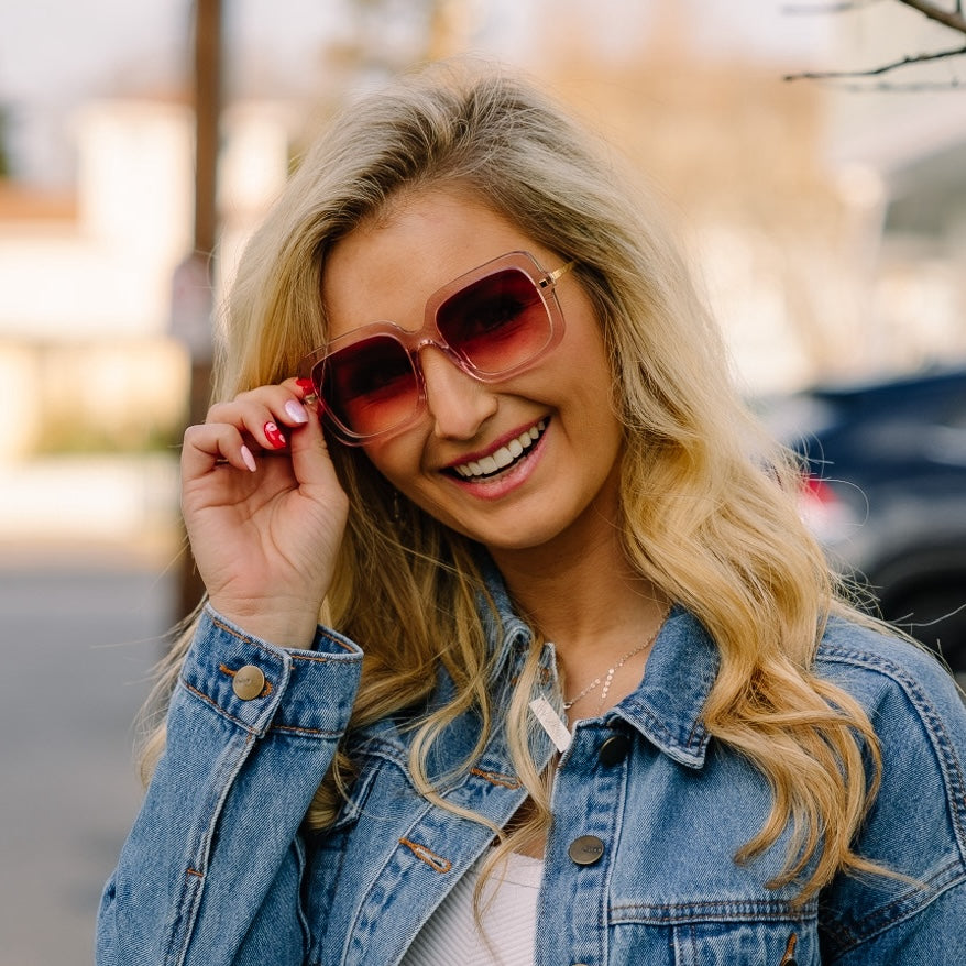 Introducing, our iconic Sandra as prescription glasses or sunglasses. These showstopping glasses feature an oversized square fit, metal temples, and retro feel.