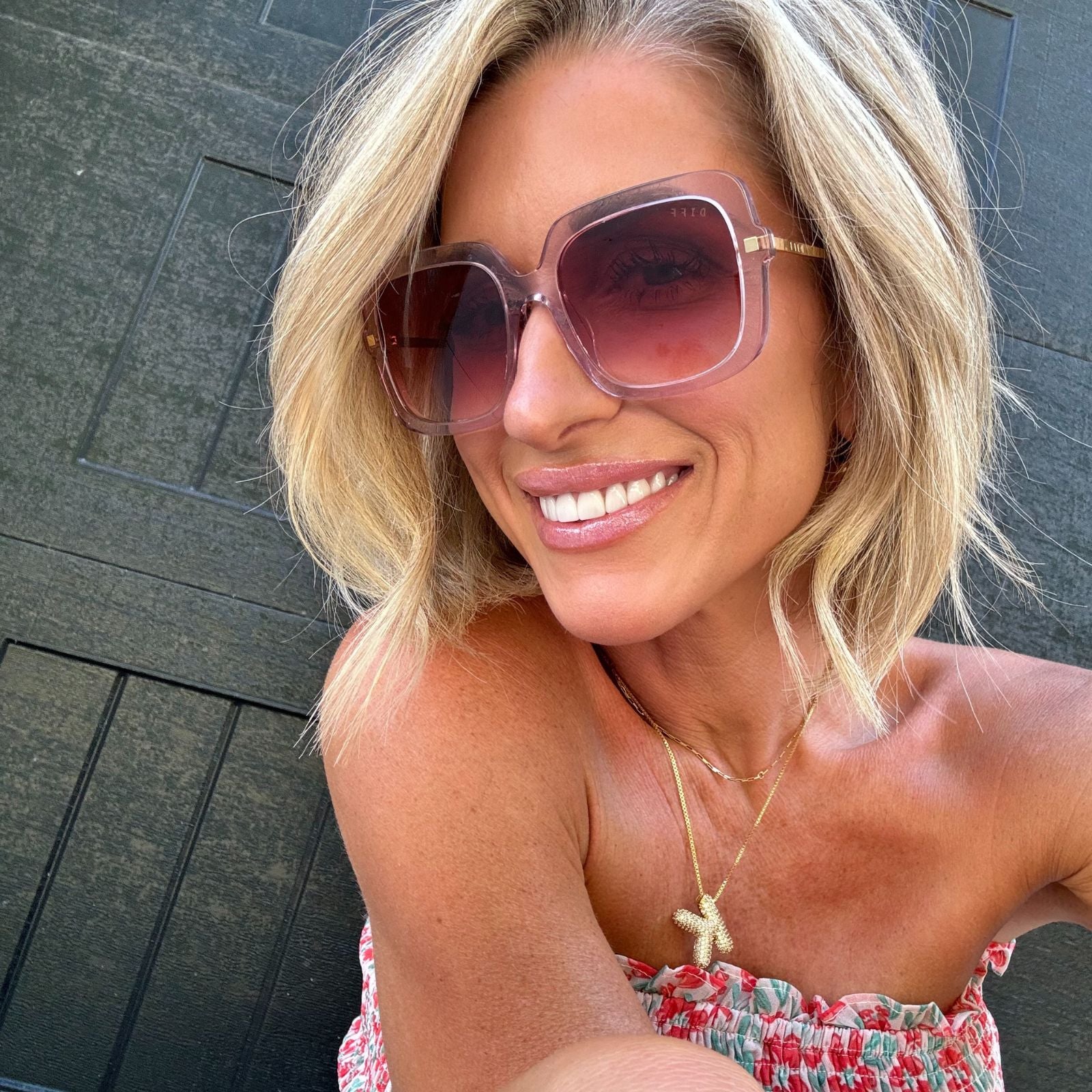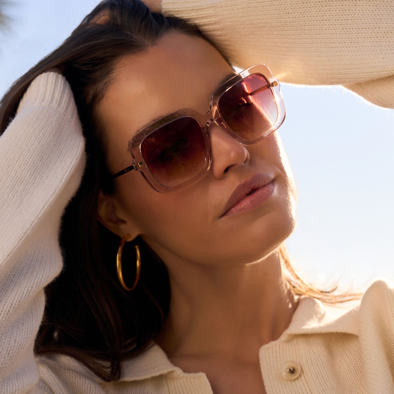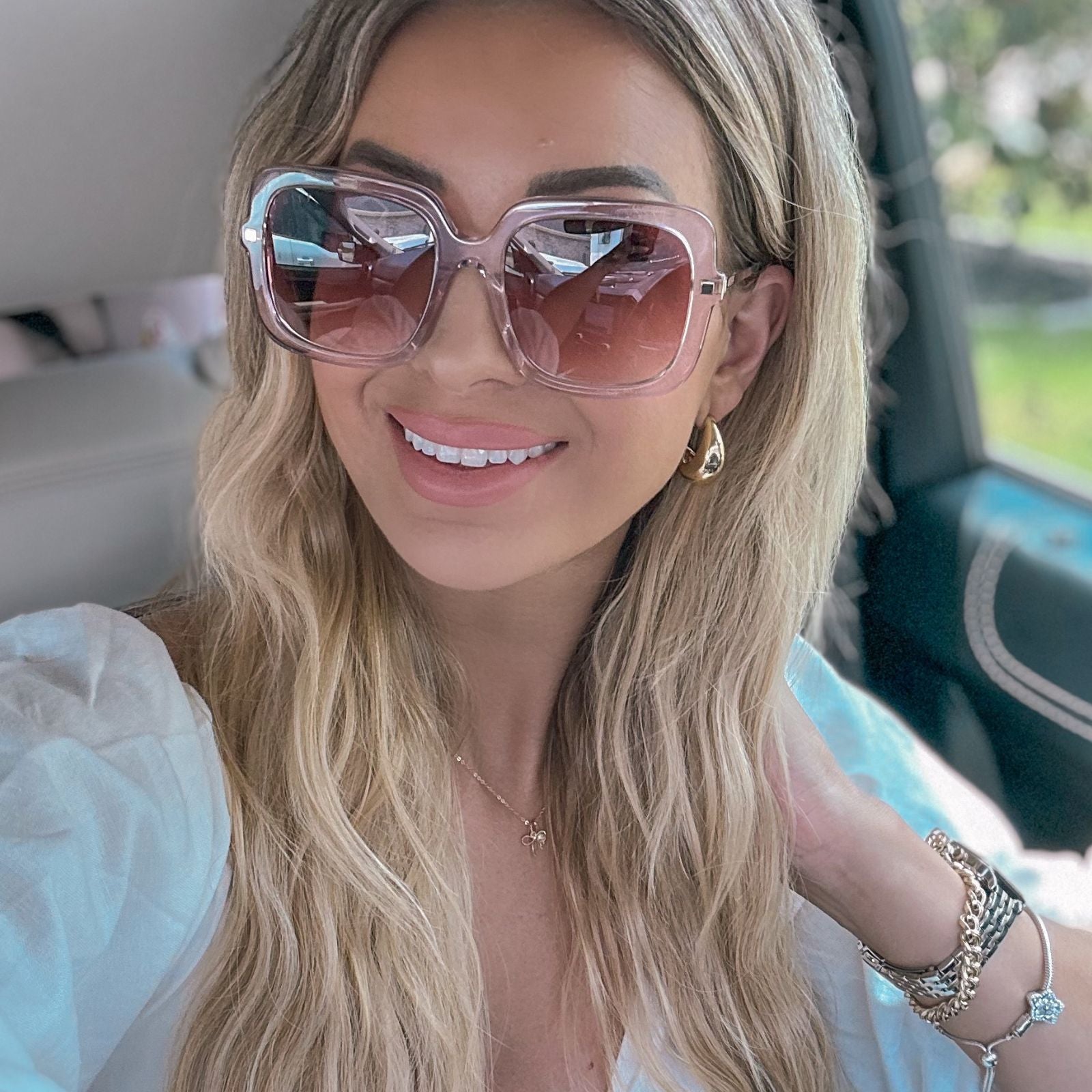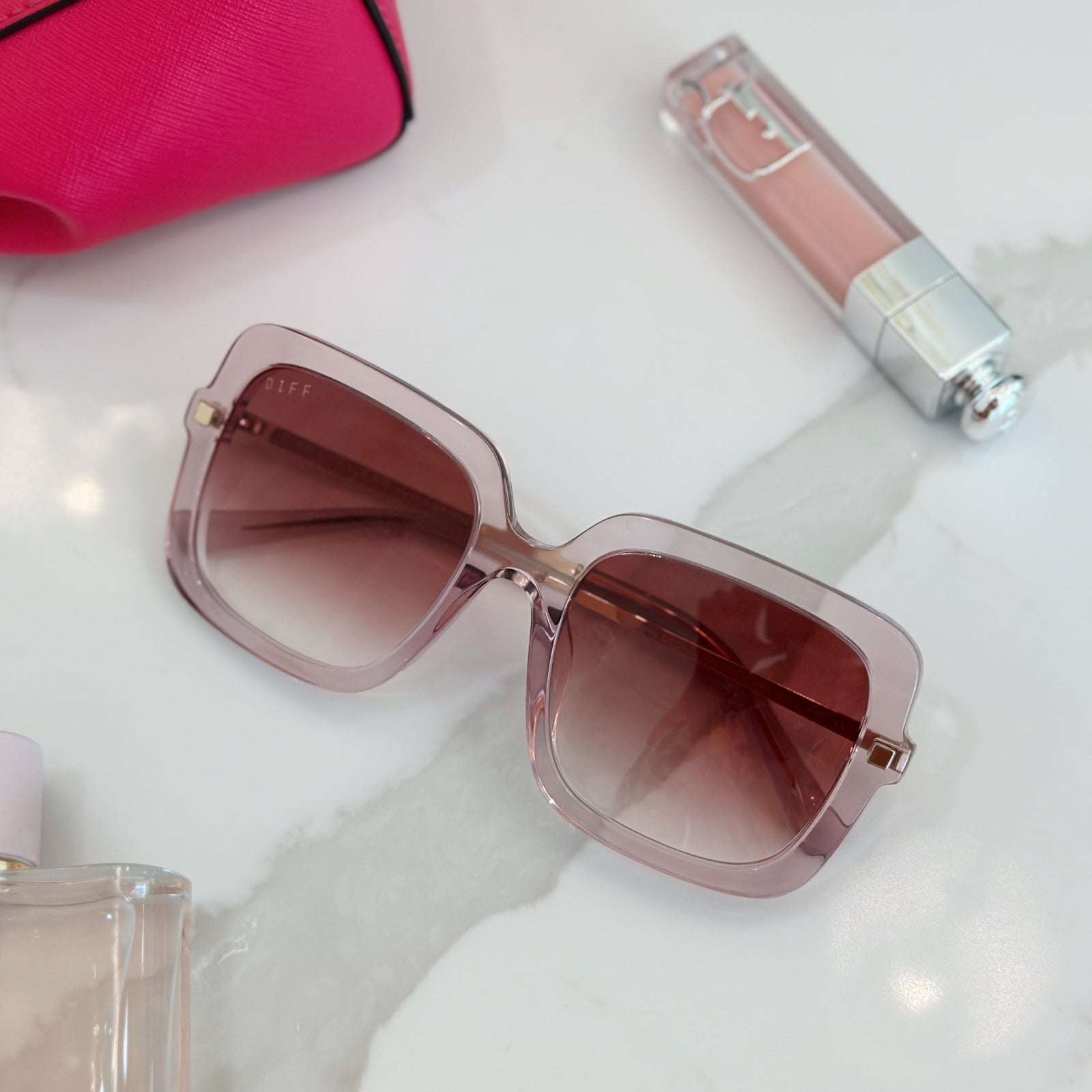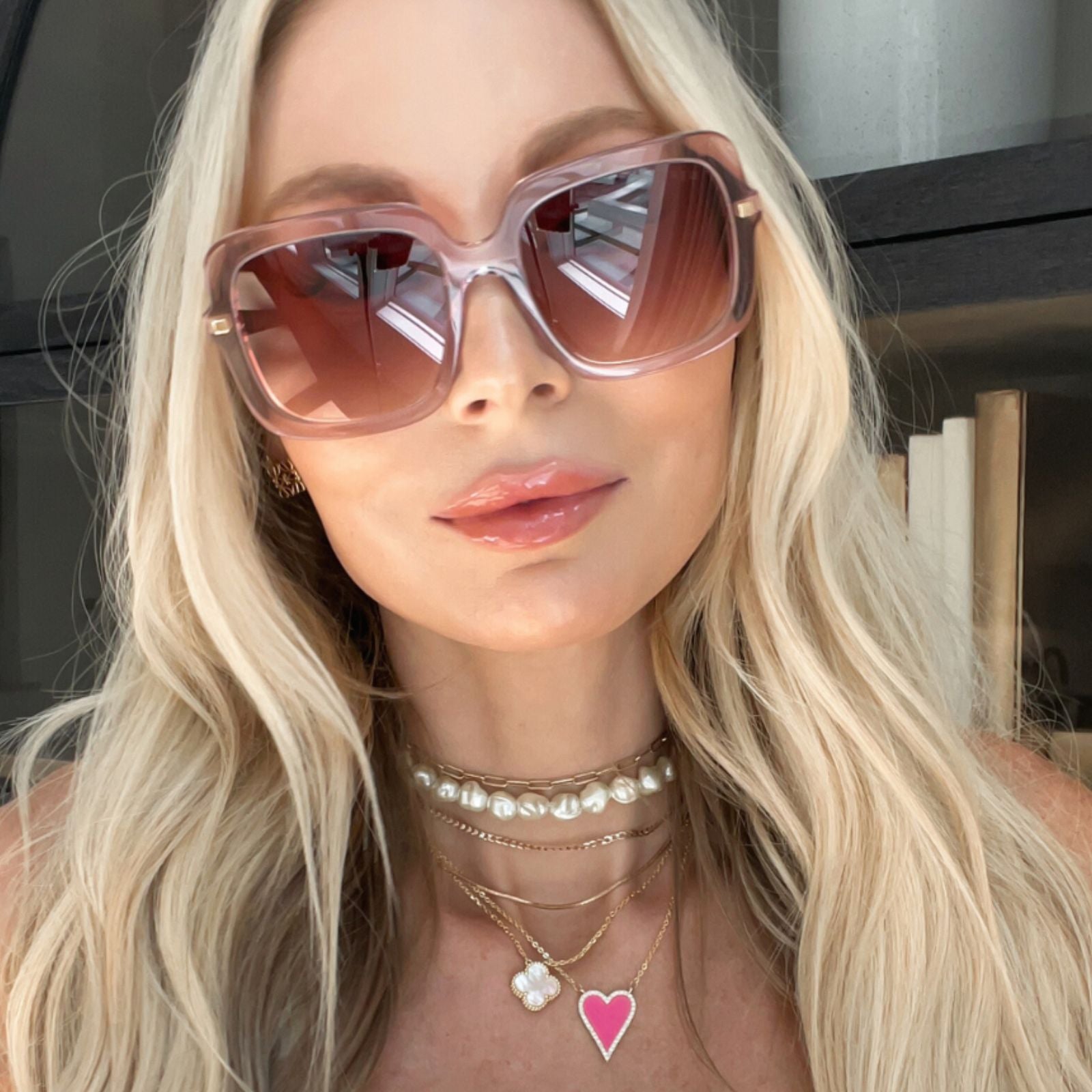 SANDRA - LIGHT PINK CRYSTAL + DUSK GRADIENT SUNGLASSES