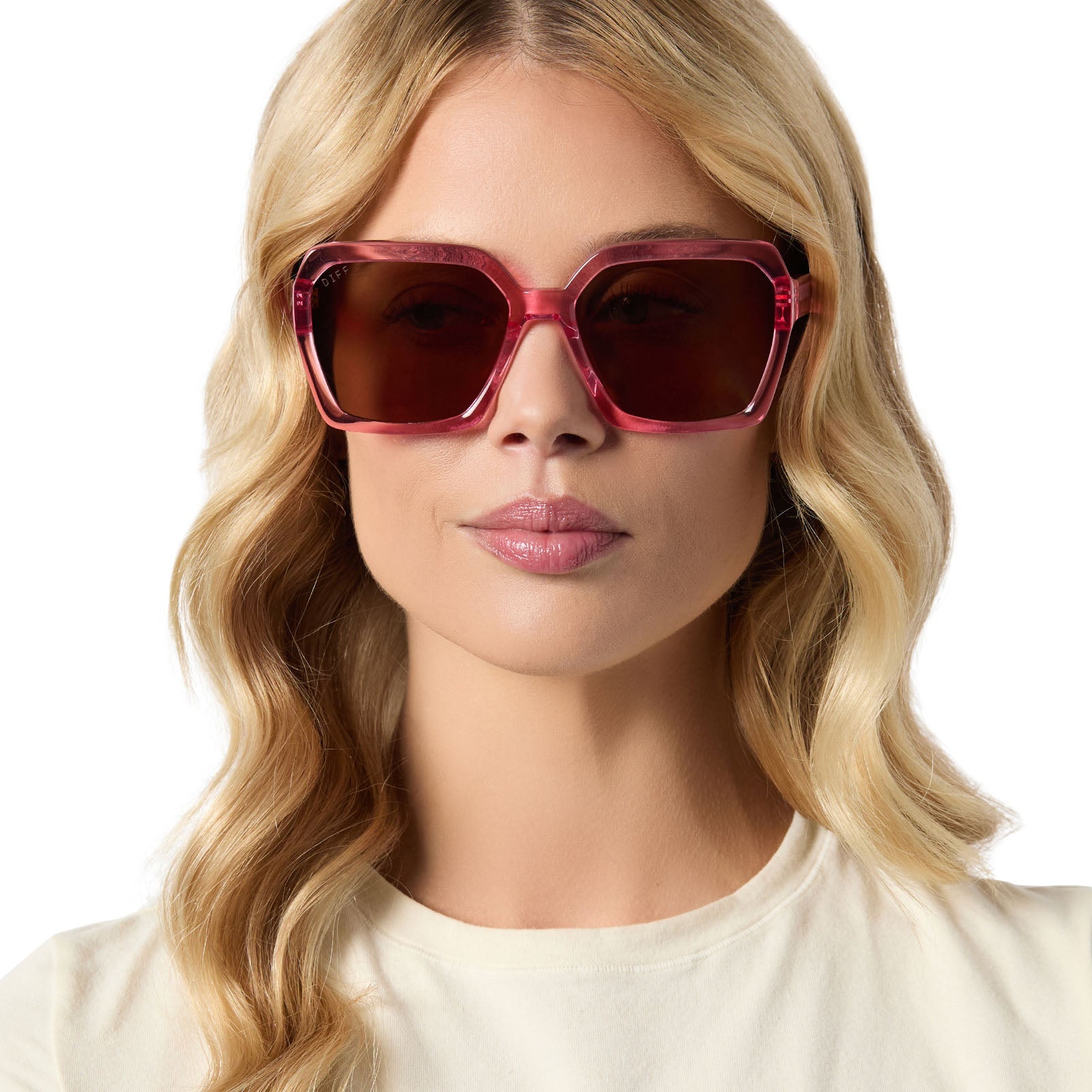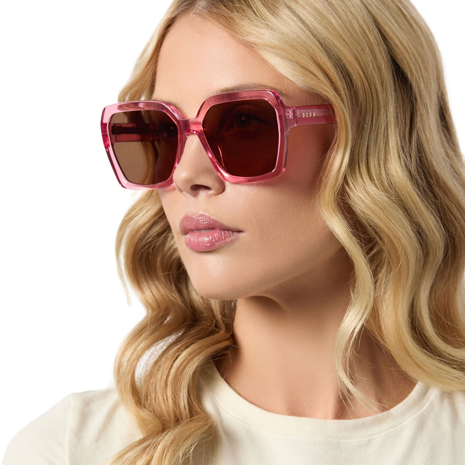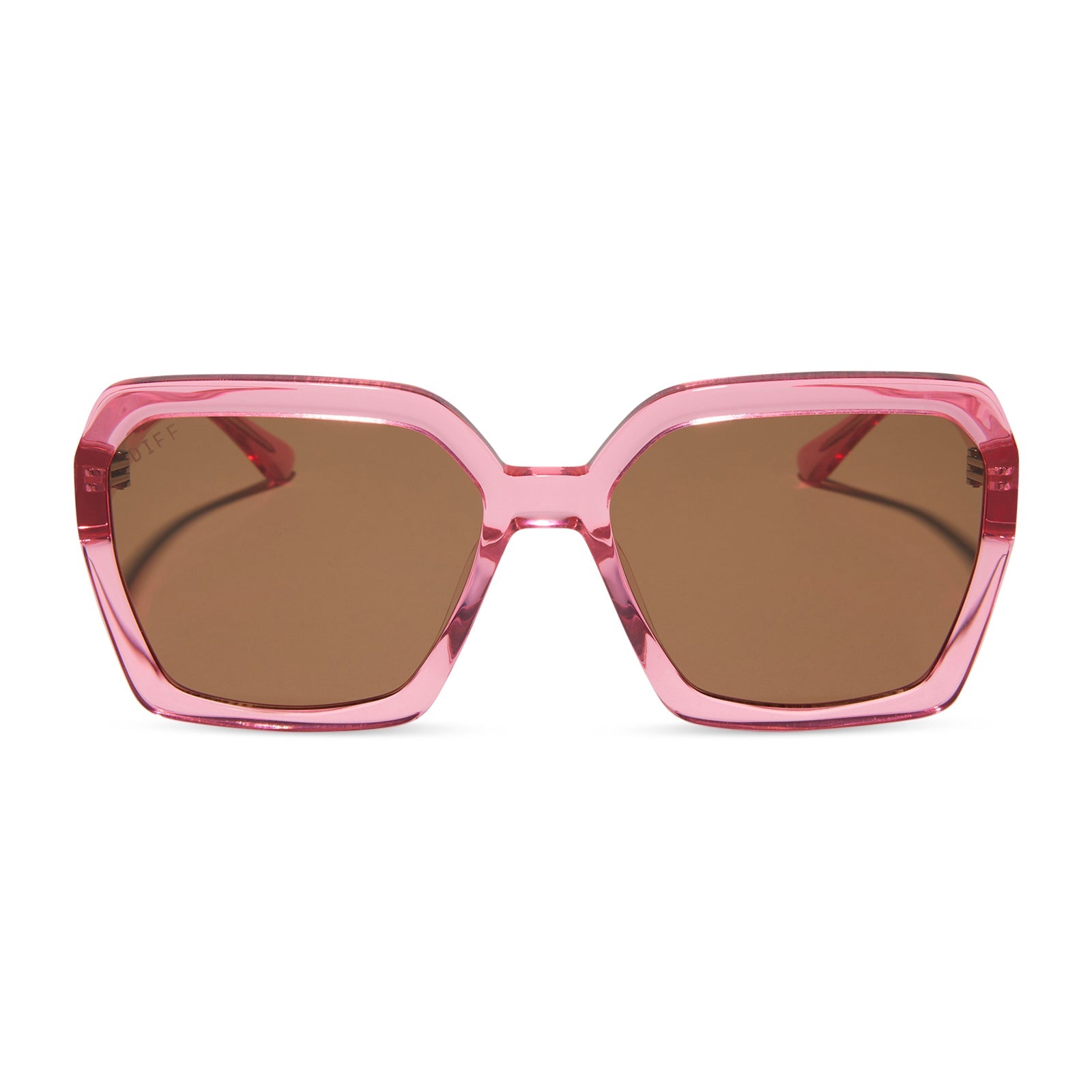 SLOANE - CANDY PINK CRYSTAL + BROWN SUNGLASSES