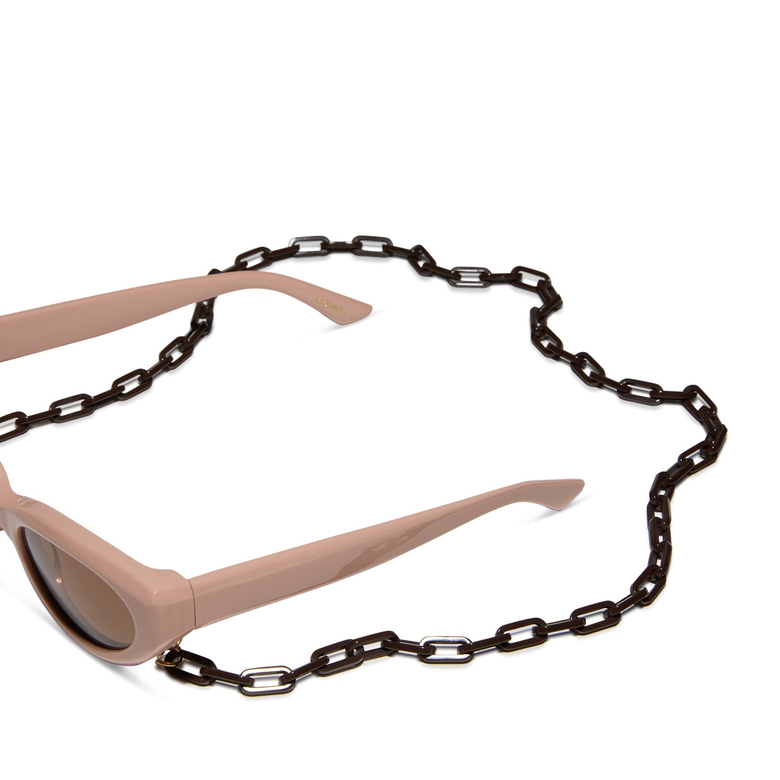 Take your sunglasses to the next level in fashion and function with an elevated chain to keep your shades secure - and looking stylish. The small links of the acetate chain are awash in rich truffle hues, so you can bask in warm, minimalist elegance. To use, simply attach your new chain to the temples of your sunglasses.